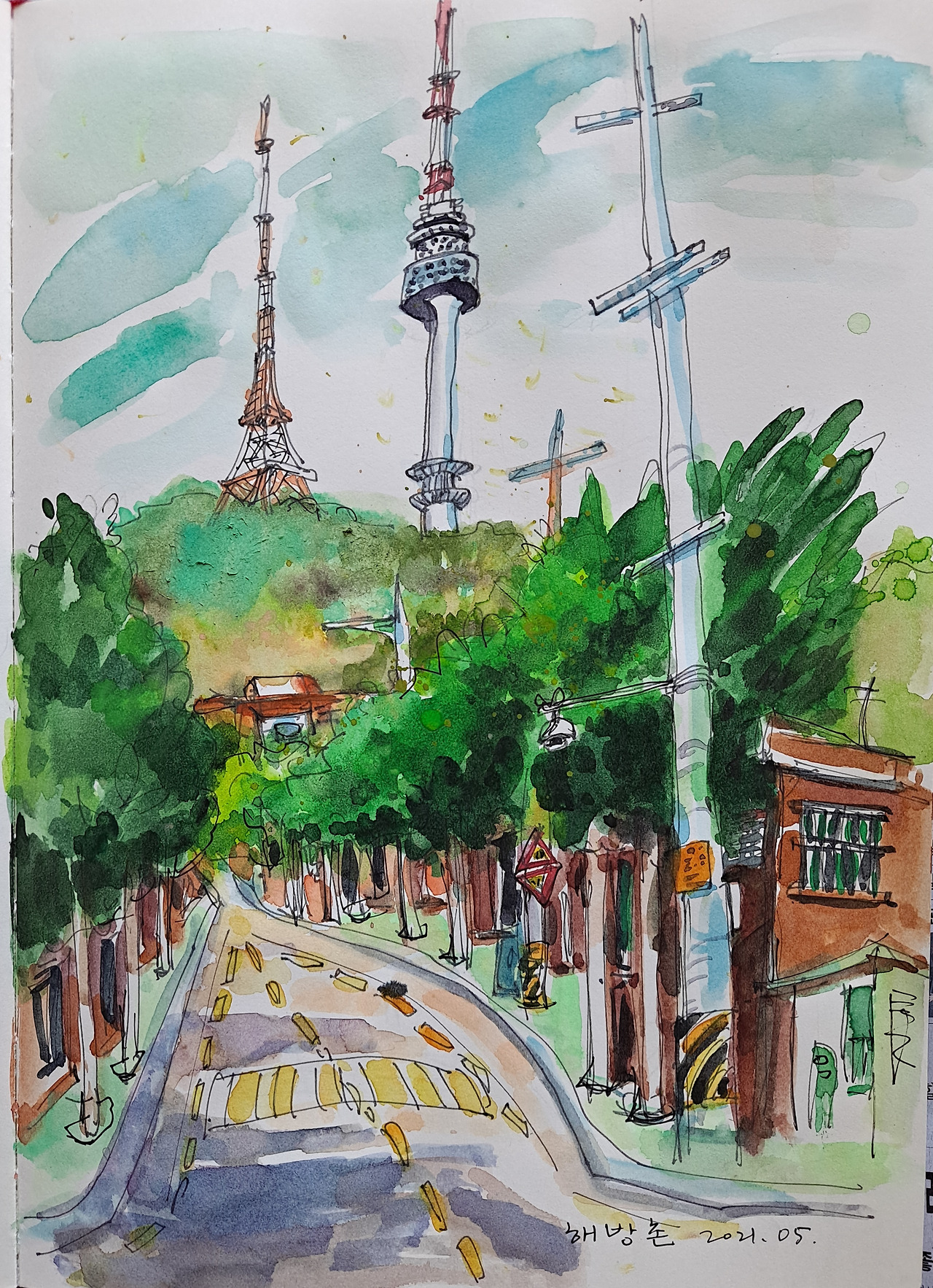 밤길을 걷다 무심코 쳐다본 하늘에 둥실 떠있는 보름달을 보고 화들짝 놀라듯, 해방촌 언덕을 오르내리다 고개를 들면, 눈앞을 가로막는 남산타워에 매번 놀라곤 한다.