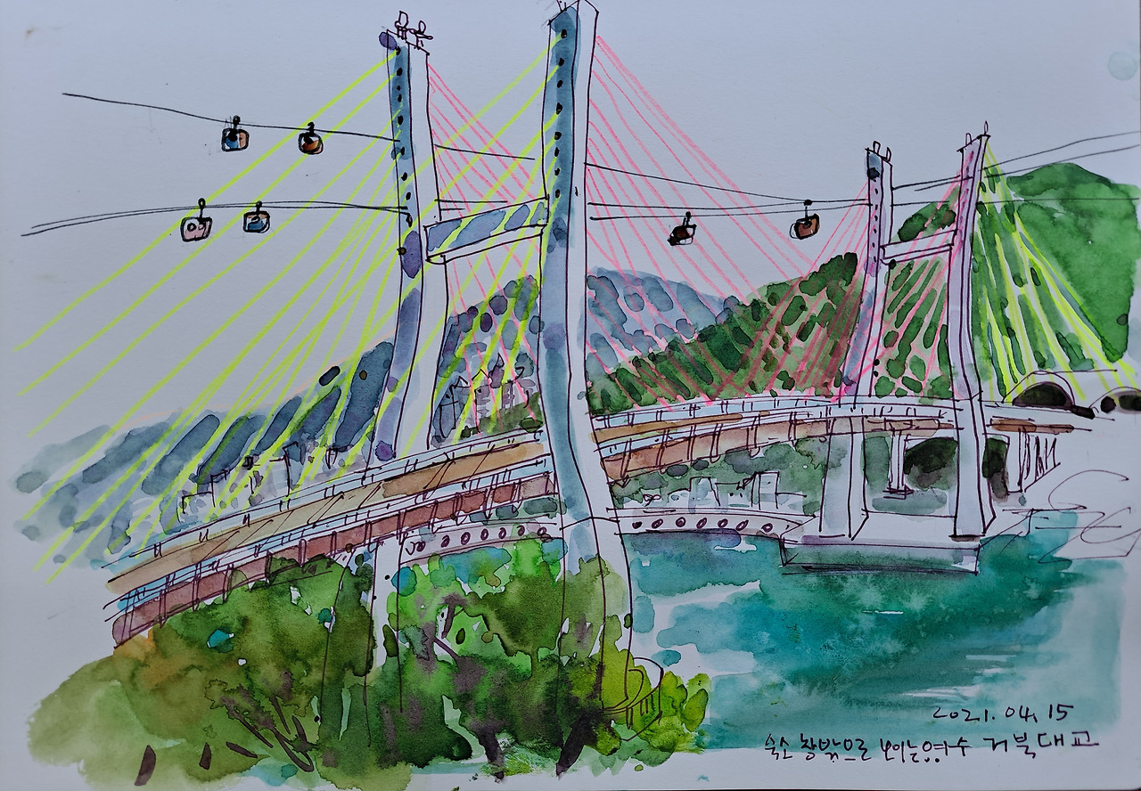 들어서는 순간 탄성이 터져 나왔던, 사이트에 올려진 사진보다 실제의 뷰가 훨씬 멋있었던 여수의 호텔. 제일 먼저 눈에 들어온 것은 푸른 바다 위의 멋지고 늠름한 다리였다.