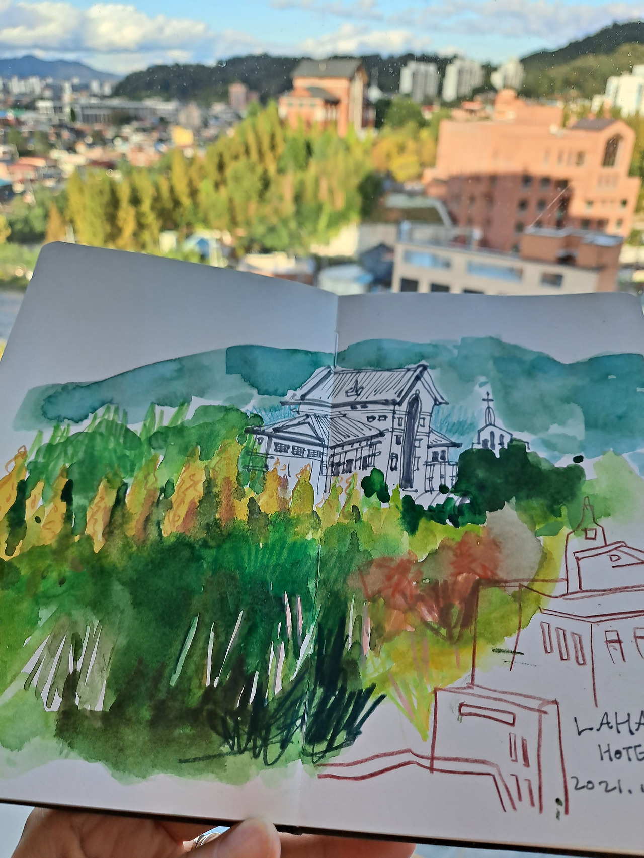 내 집(잠깐 이지만)에서 편안하게, 매일 보던 풍경이 아닌 새로운 풍경을 그릴 수 있는 흔치 않은 기회일 뿐 아니라 여행의 기록으로도