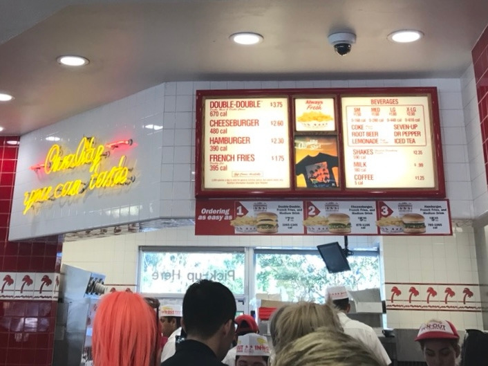 드디어 맛보게 된 인앤아웃! 나는 한껏 들떠 사진도 찍고, 프라이를 밀크셰이크에 찍어 냠냠 맛있게 먹고 있었다. 이것이 미국 서부의 맛이구나! 하며 감탄하던 중, 옆에서 시끄러운 소리가 들려왔다.