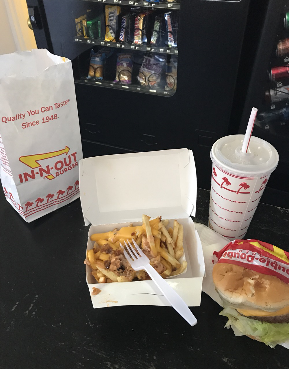 더 웃겼던 것은 커플이 자동차를 몰고 주차장을 빠져나가려고 했지만, 도로에 자동차가 많아 바로 빠져나가지 못하고 대기를 해야만 했던 것이다. 인앤아웃 직원들, 내부에 있던 방문객들도 밖으로 나와 모두가 함께 주차장에서 이 광경을 목격하고 있었다. 몇몇은 땅바닥에 주저앉아 괴로워하는 남자들에게 다가갔다.