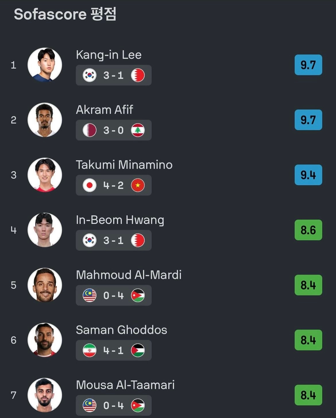 (현재 Sofascore 평점 아시안컵 선수 랭킹 1위이다.)