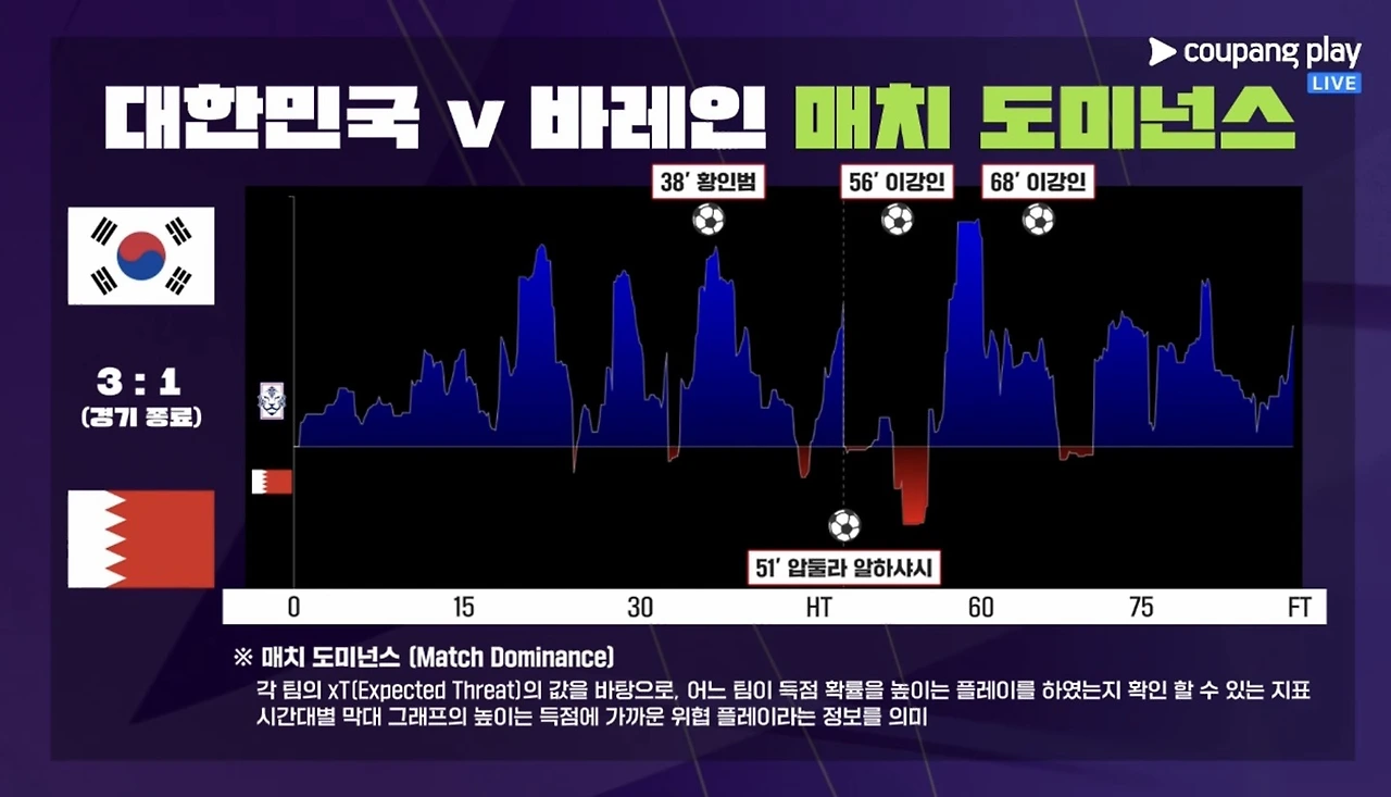 (경기 결과는 대한민국 vs 바레인 3: 1로 우리나라 승!)