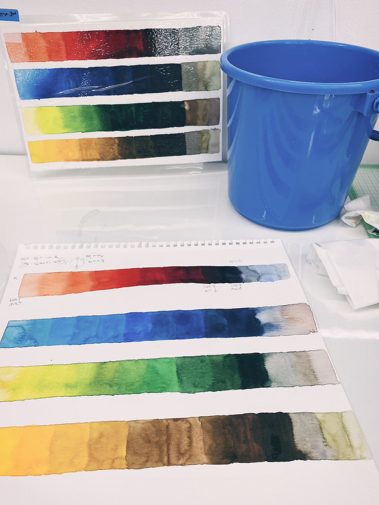 할 줄 알고 머리로 설명을 할 수 있어도 손이 붓에 물을 머금고 어떻게 흘리냐에 따라서 나오는 게 다른걸! 설레임 안고 명도, 채도 기억해내기 ㅎㅎㅎㅎ