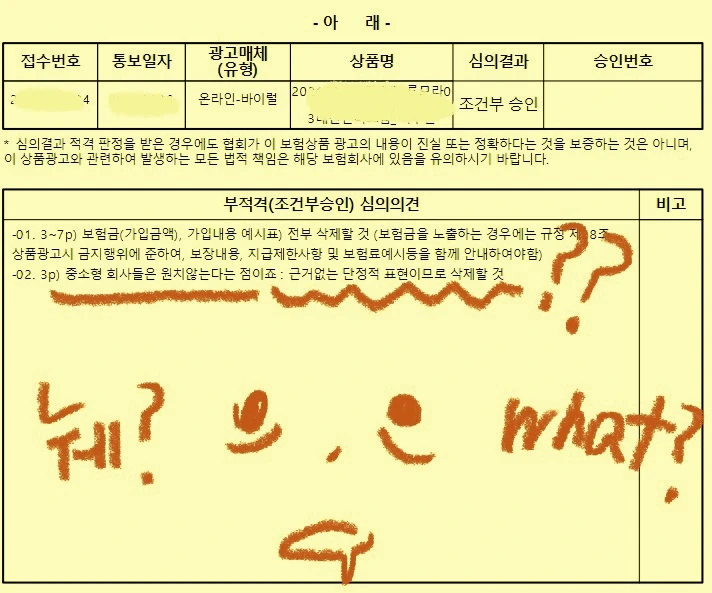 본사 준법감시팀과 일차적으로 통화하고, 풀리지 않은 의문에 다시 협회 광고심의부서와도 꽤 많은 대화를 한 결과,