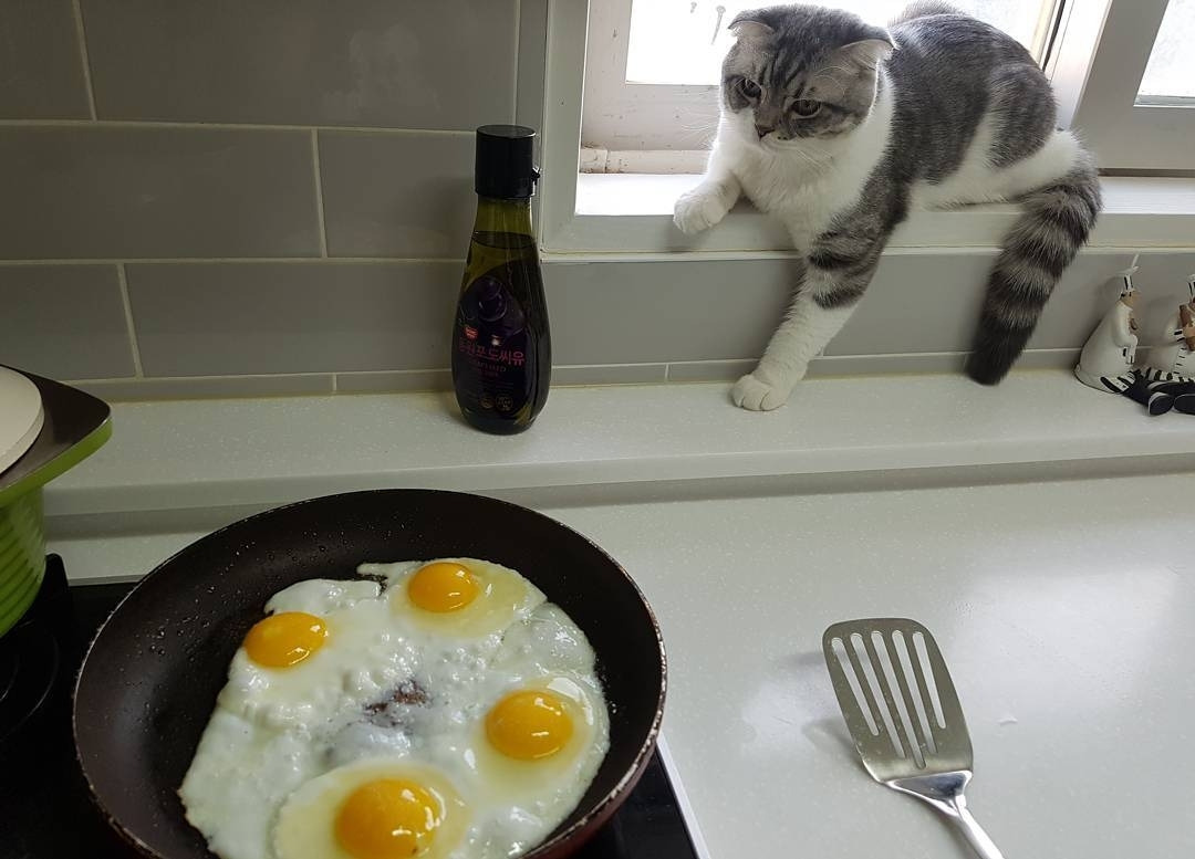 "예... 그런데 잡수시지는 못하실 거예요. 이건 집사 형아들이 먹을 계란이란 음식이에요"