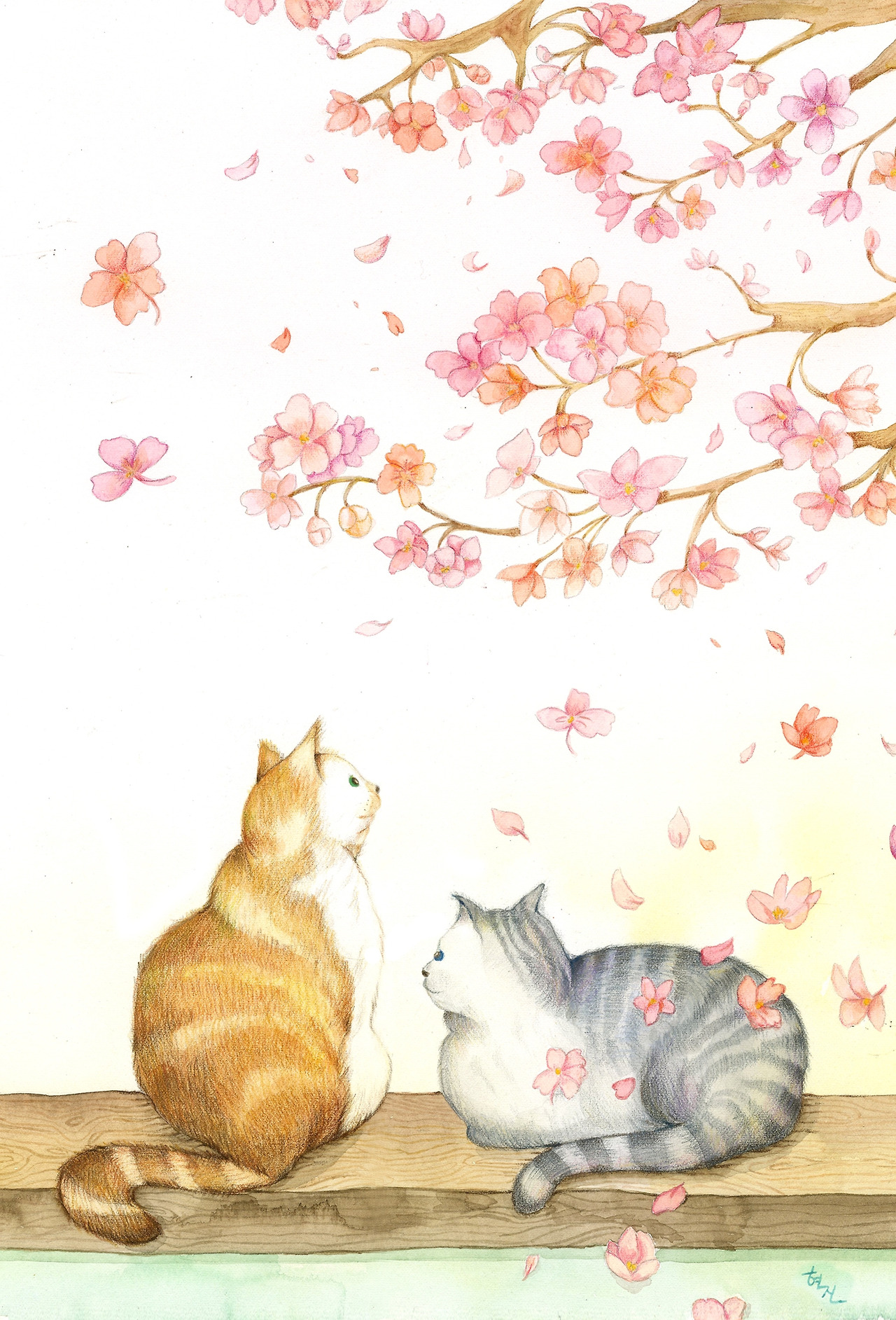 창밖으로 나가 벚꽃 흐드러지게 떨어지는 나무밑에서 꽃놀이를 즐기는 두 묘생들을 그려본다.
