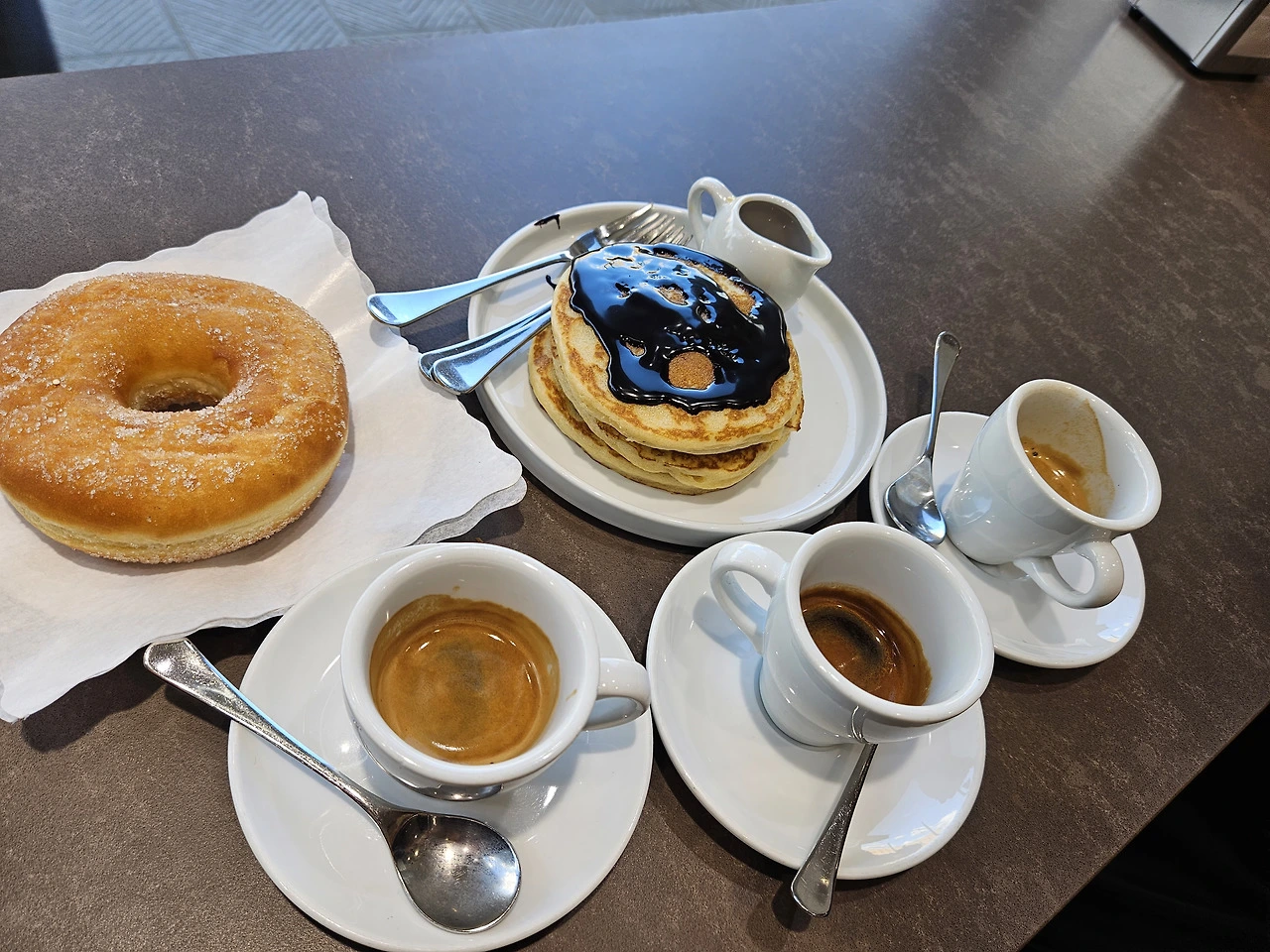 역에 도착하자마자, 에스프레소와 달달한 도넛과 팬케익으로 잠시 배를 달랬다. 너무 맛있었던 커피와 빵