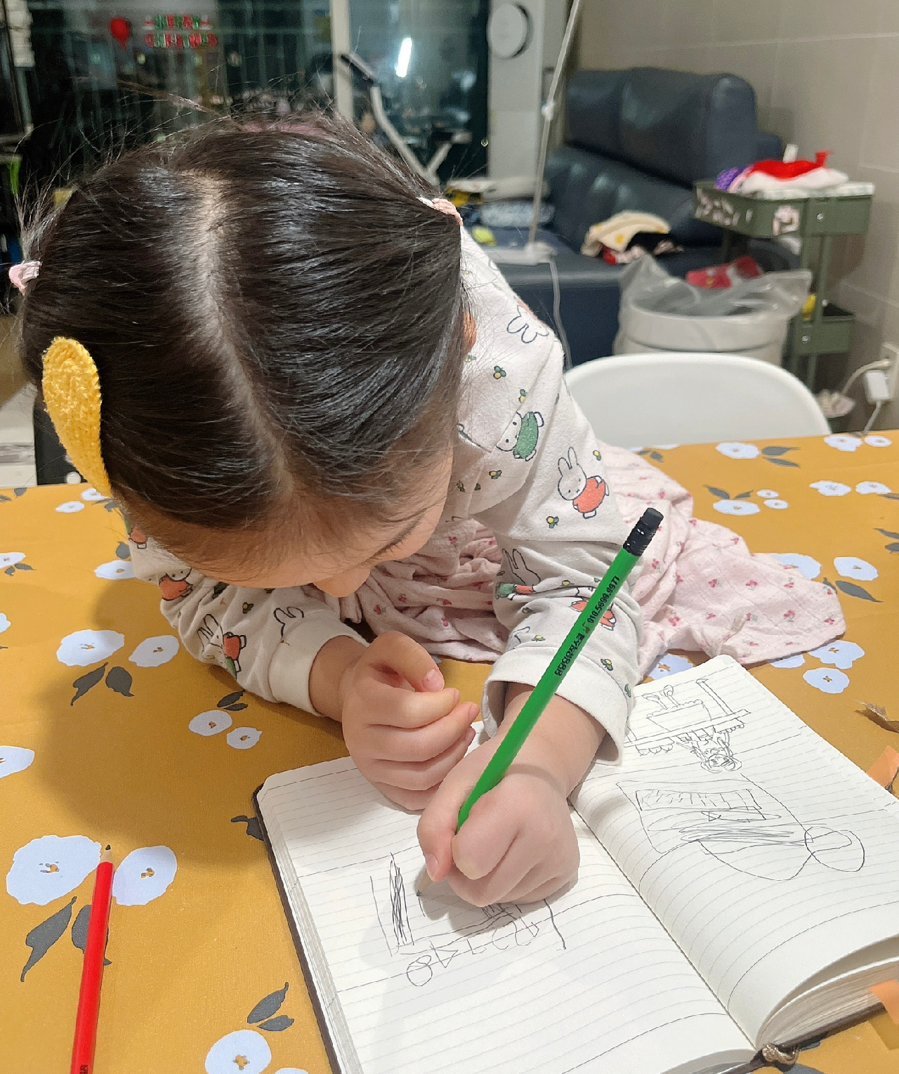 내가 쓰는 걸 보고 수지가 내 앞에 앉더니 자기도 쓰고 싶다고 했다. 그래서 노트 한 권과 연필을 줬다.