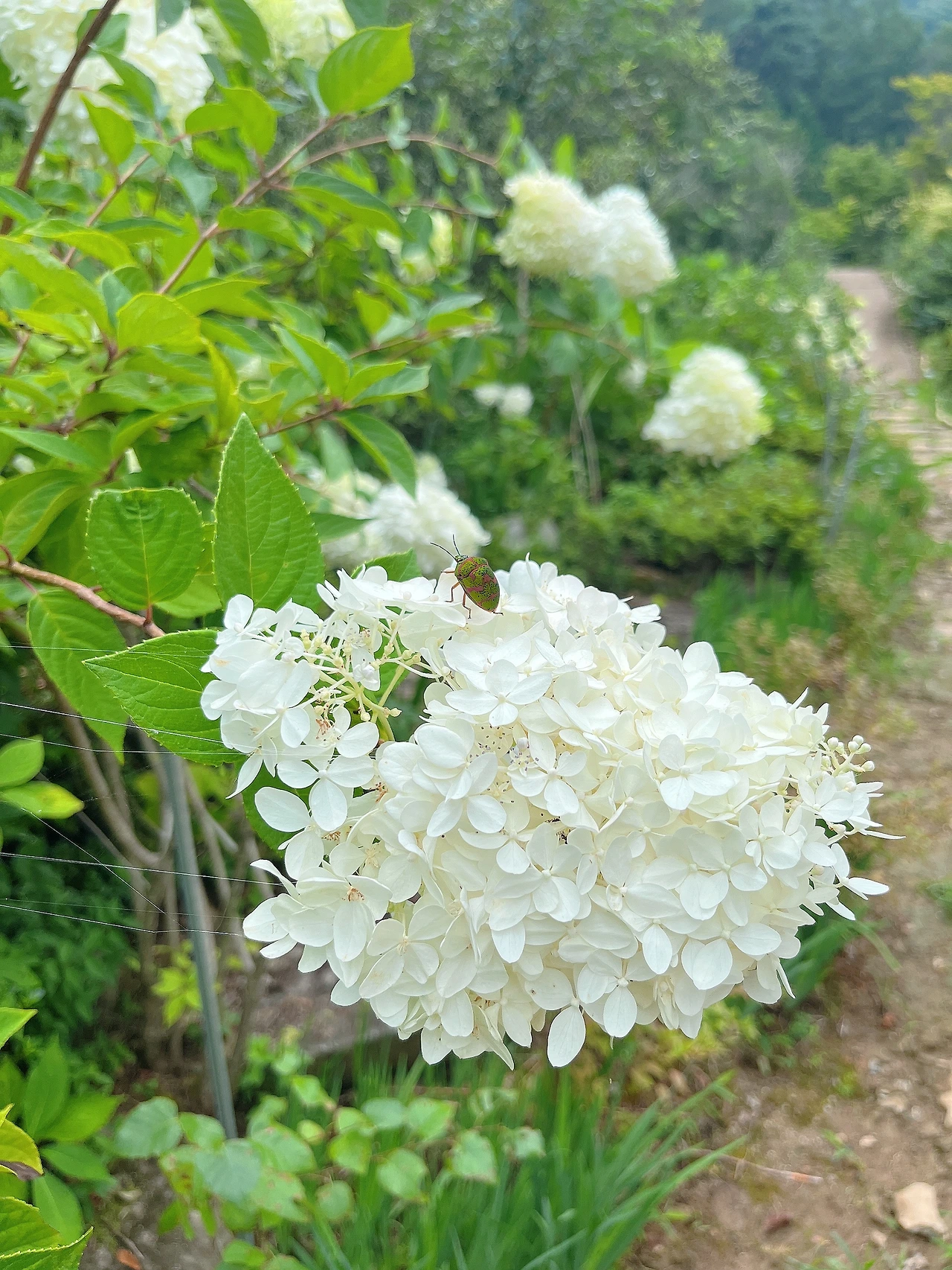 수국은 지금 지는 시기인 듯했지만, 그래도 걷다가 만나게 되는 아직 지지 않은 아름다운 수국을 만나면 너무 반갑고 행복했다. 아름다운 꽃잎을 가까이서 하나하나 보기도 하고, 꽃에 앉은 벌레와 나비, 벌을 보기도 하고, 자연 하나하나를 자세히 들여다보는 그 순간, 다른 모든 걸 다 잊고 오직 지금 내 눈앞의 자연에만 집중하며 평안했다.