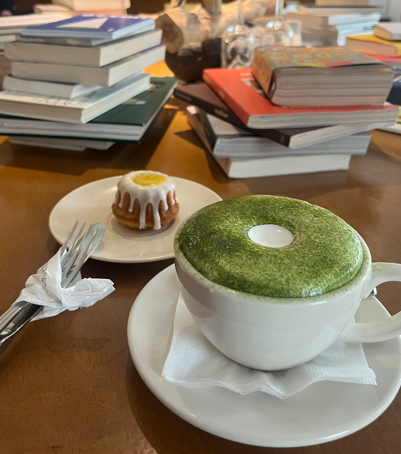 말차라떼의 은은한 달콤함이 내 입안을 가득 채우고, 레몬 케이크의 상큼하고 달콤한 향과 맛이 내 마음 구석구석까지 행복하게 만들었다.