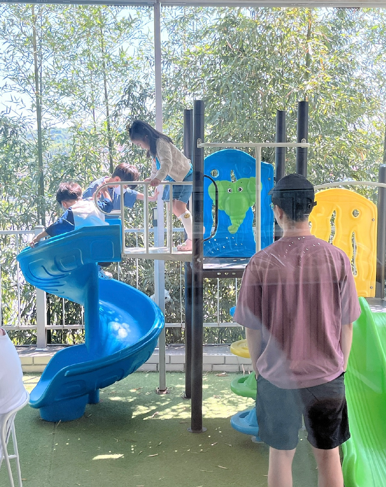 카페에 들어가서 음료와 디저트를 시키고, 수지는 곧바로 미끄럼틀로 달려갔다.그리고 신나게 놀기 시작했다. 우리 부부는 번갈아 가면서 수지랑 같이 놀기도 하고, 셋이서 같이 놀기도 했다.