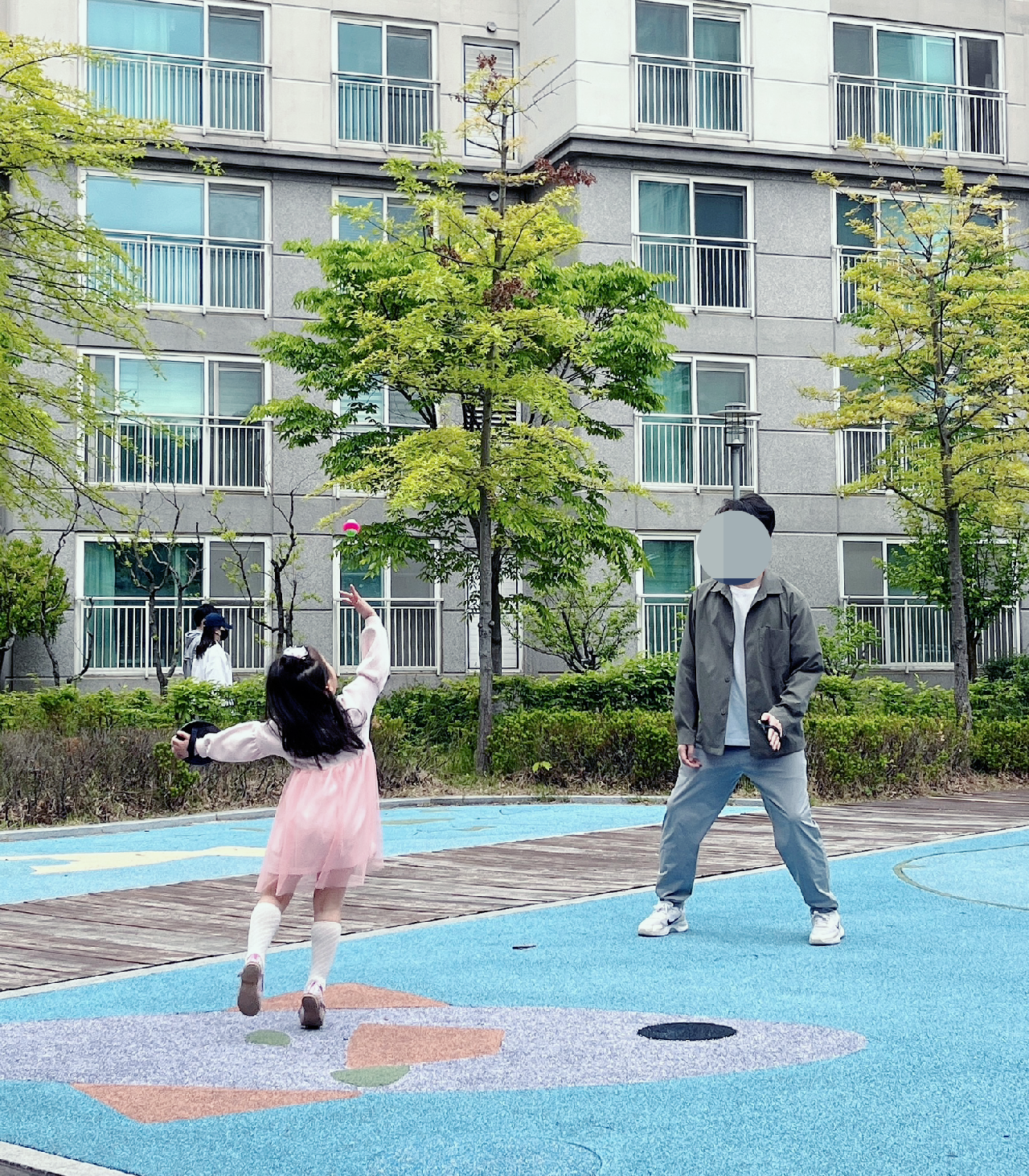 수지는 미끄럼틀을 탔고, 나와 남편은 챙겨 간 캐치볼을 했다. 정말 오랜만에 하는 캐치볼이라 처음 몇 번은 내가 계속 공을 놓쳤다. 남편은 나에게 왜 이렇게 못하냐며 장난스레 말했는데, 몇 번 해보고 적응한 나는 곧바로 공을 잘 캐치해서 받았다. 남편과 주고받기가 되니 재미있었다.