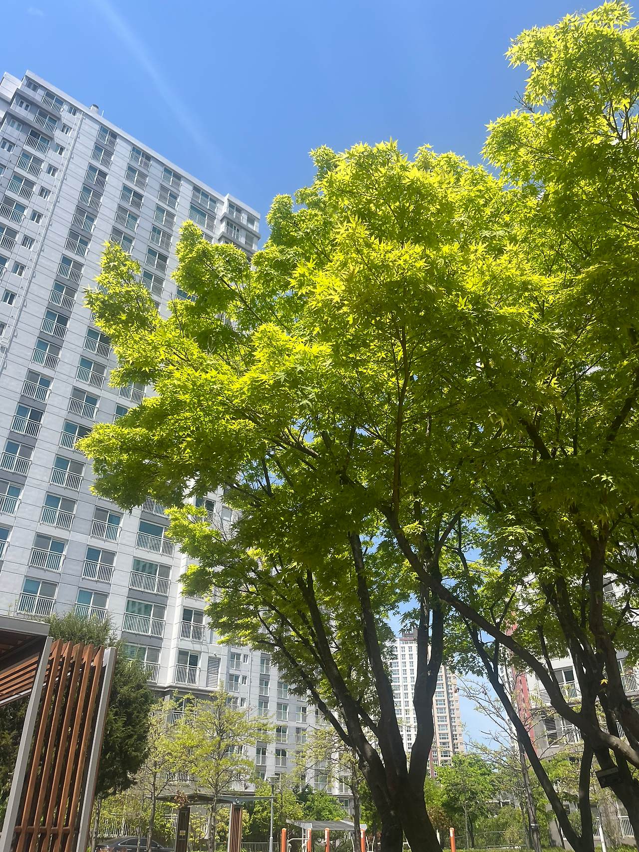 어린이날 오전, 우리는 아파트 단지를 산책하러 나갔다. 이사 온 아파트 단지 공원이 이쁘게 잘 꾸며져 있어서 여유롭게 산책하고 싶었는데 그동안 이런 시간을 가지지 못했다. 그런데 이제 집정리가 다 돼서 산책할 여유가 생겼다. 이사를 오고 세 식구가 같이 산책을 하는 건 처음이었다.