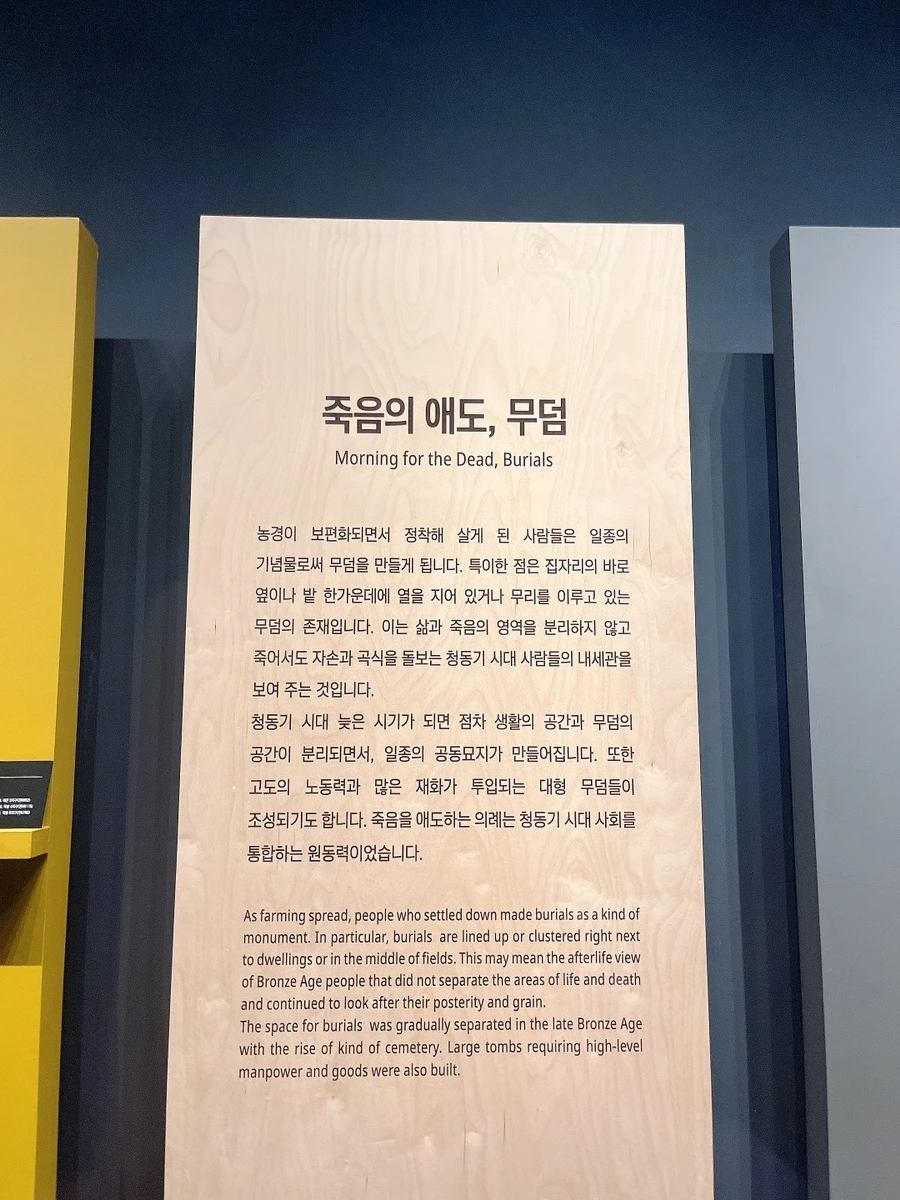 그리고 청동기 시대에는 삶과 죽음의 영역을 분리하지 않고 무덤을 사람들의 집과 밭 가운데 두었다는 게 인상적이었다. 삶과 죽음의 영역을 분리하지 않는다는 것은 삶과 죽음은 공존한다고 생각한 것이 아닐까.