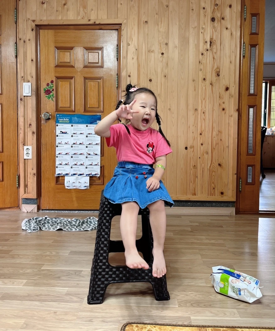 수지는 할아버지댁에서도 제기를 꺼내서 생일 축하 놀이를 하고, 종이컵 하나로 이건 커피라며 할아버지 할머니에게 종이컵을 건네준다. 그리고 “이건 바닐라 라테 커피야 먹어봐”라고 말해서 모두 함박웃음 짓게 했다.