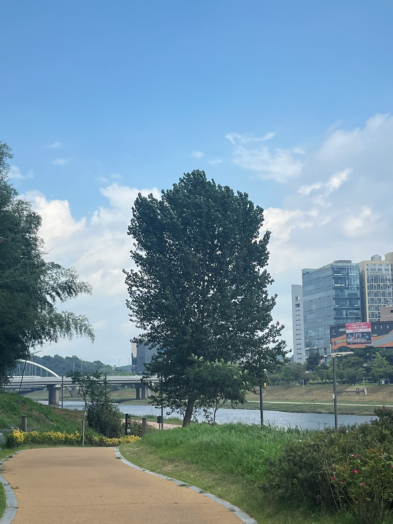 물소리에 귀를 기울이며 징검다리를 건너는 데 집중하다 보니, 어느새 건너편 공원에 도착했다. 그곳은 사람도 없고 매우 한적하며 고요했다. 징검다리 하나만 건너면 올 수 있는 곳인데도, 그동안 다리 하나 건너는 게 귀찮아서 와보지 않았던 것이 조금 후회될 정도로 참 좋았다.