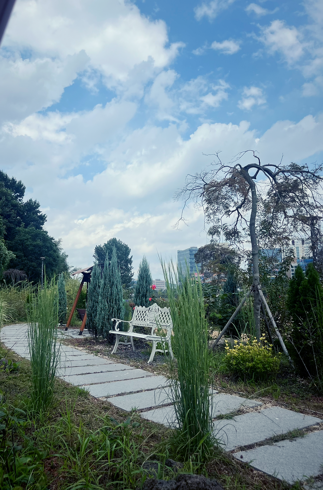 나는 등받이가 있는 그네 벤치에 앉았다. 이 날은 생각보다 기온이 높아 벤치가 조금 뜨겁긴 했지만, 혼자서 고요히 이 아름다움을 온전히 느낄 수 있다는 생각에, 엉덩이가 조금 뜨거운 것 정도는 충분히 참을 수 있었다.