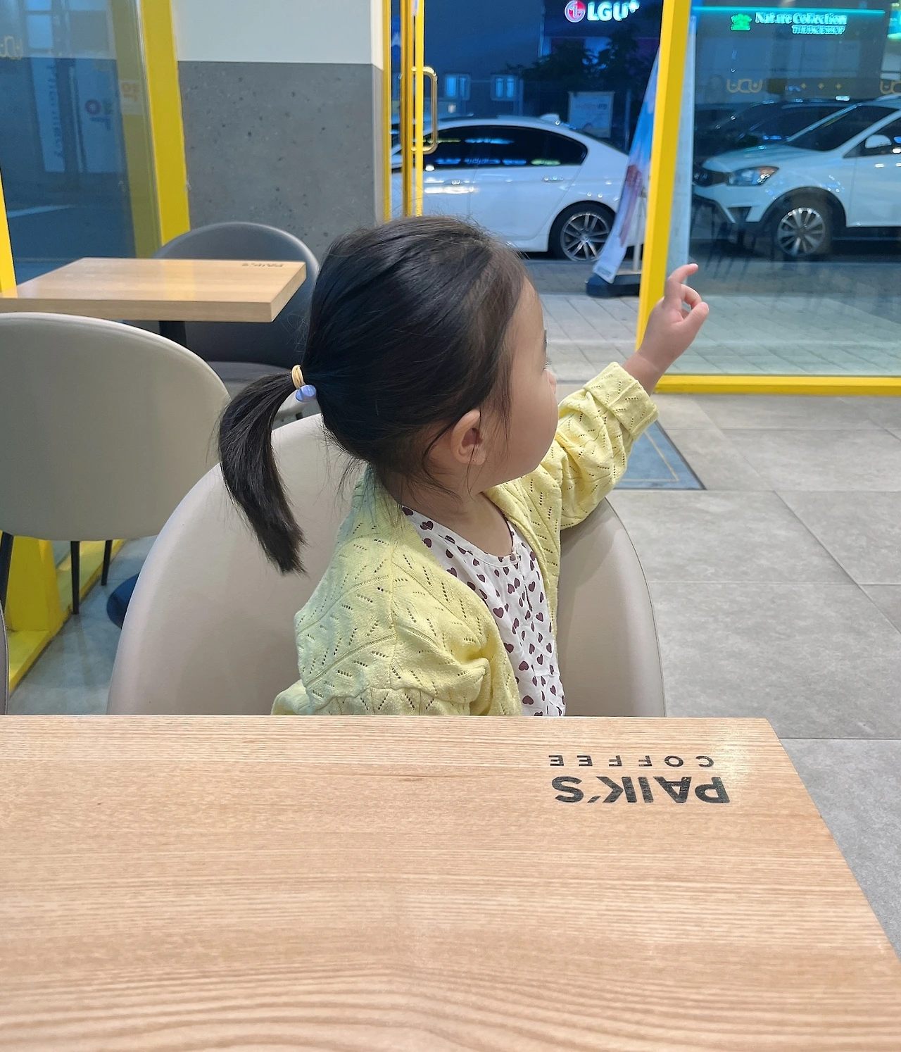 우리가 갔을 때 카페에 사람이 아무도 없어서, 수지의 자유로운 세상이었다. 시크릿 주주 음료수를 맛있게 먹고 즐거워하는 수지를 보니, 나도 같이 웃음이 나고 감사했다. 지금 몸은 열이 나고 아파도, 기분이 좋은 수지를 보니 우리 아기 금방 잘 이겨내겠구나 하는 마음이 들었다. 아픈 와중에도 얼마나 귀엽고 이쁜지, 더 자주 안아주었다.