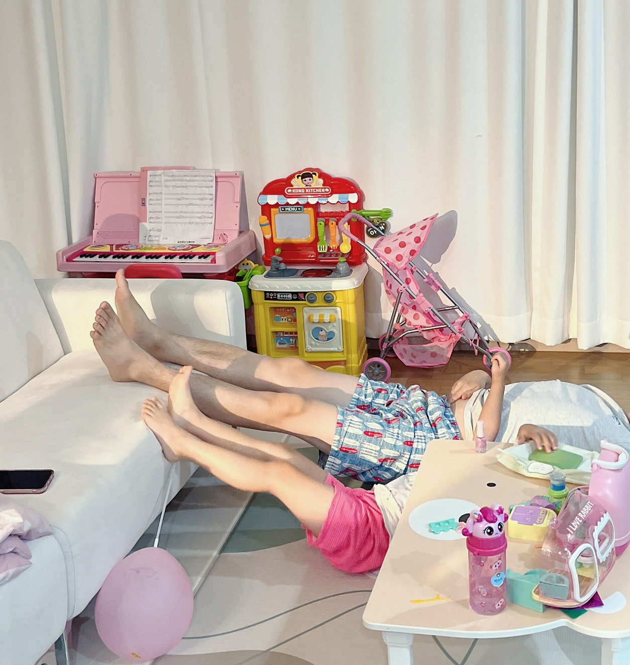 딸과 함께 발톱에 매니큐어를 바르고 나란히 누워 말리고 있는 아빠라니. 그 모습을 보는 순간, ‘이게 바로 행복이구나’ 하는 생각이 들었다.