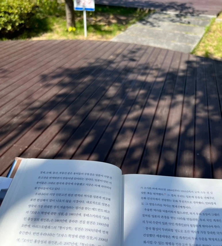 책을 읽는 동안 따뜻한 햇살이 내 목덜미를 덮어주고, 책에도 햇빛이 살짝 비춰서 그림자가 생긴다. 뜨거운 햇살이 아닌 따뜻한 햇살이 나를 비추는 이 느낌이 좋다.