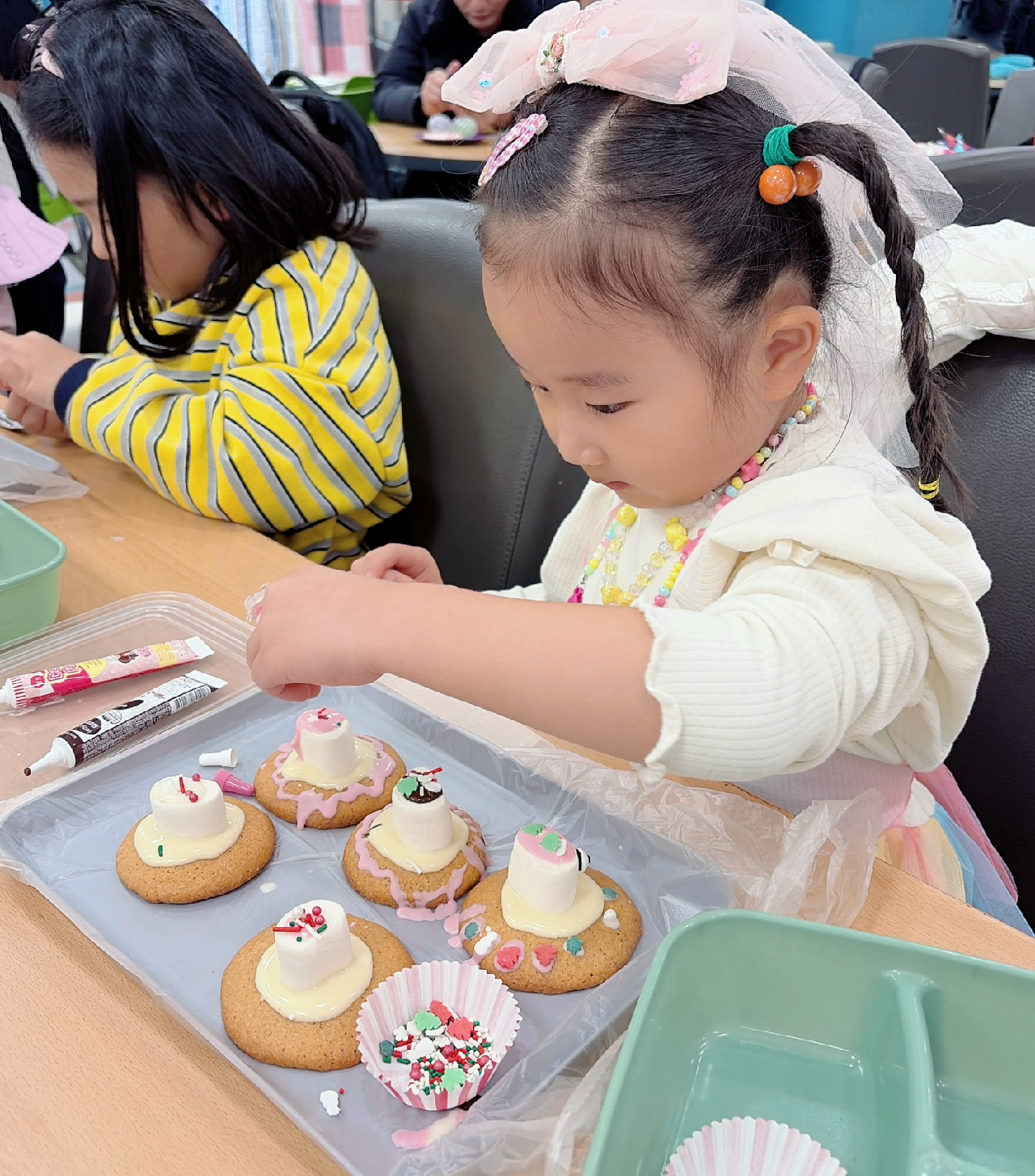 같은 재료인데도 아이마다 방식도 다르고 결과물도 달라서 그 모습이 참 흥미롭고 귀여웠다. 수지는 장인정신을 발휘해 하나하나 공을 들이며 꾸몄다. 그 모습이 너무 사랑스러워서, 지켜보기만 해도 행복했다.