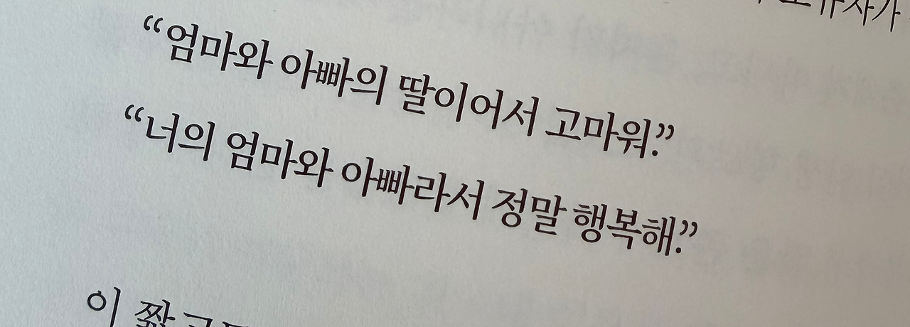 이 짧고도 흔한 표현에는 나와 부모의 유기적인 연결감과 존재의 소중함 사랑받는 존재임을 확인시켜주는 엄청난 의미가 담겨 있다.