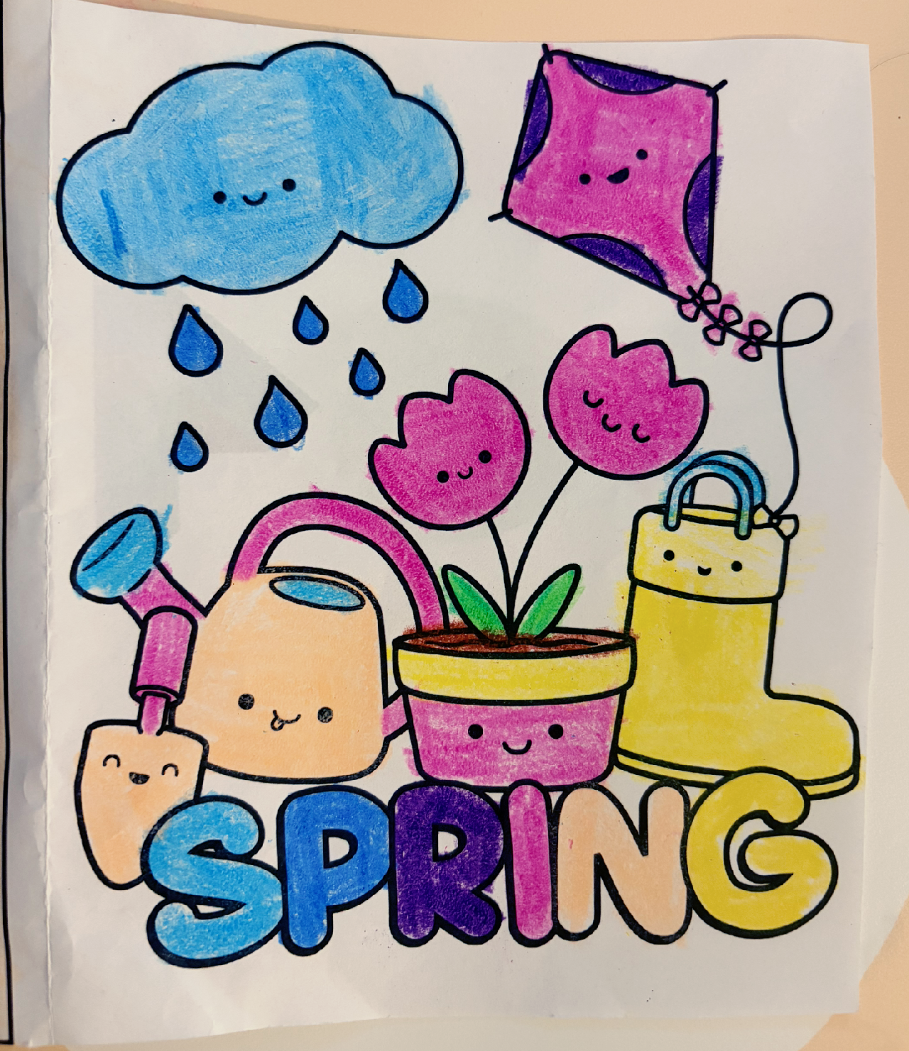 그림을 색칠하다 보니 나도 어느새 집중하게 되었고, 하나하나 신경 써서 색을 채우고 있었다. 귀여운 그림에 알록달록한 색감이 더해지니 생동감이 넘쳤고, 그림은 더 사랑스러워졌다. 색칠에 몰두하다 보니 잡생각도 사라지고 마음이 편안해지면서 기분도 한결 좋아졌다.