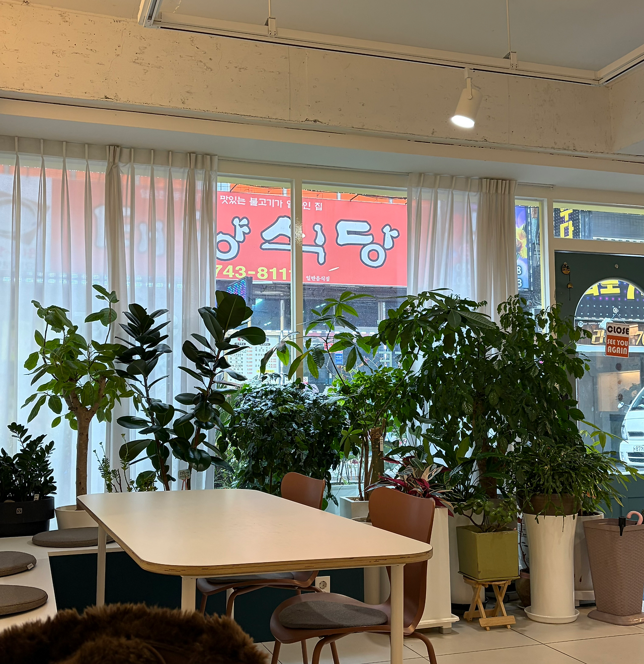 편안하고 예쁜 공간에 마음이 활짝 열렸다. 초록 식물들이 곳곳에 놓여 있어 더욱 평안한 느낌이 들었다.