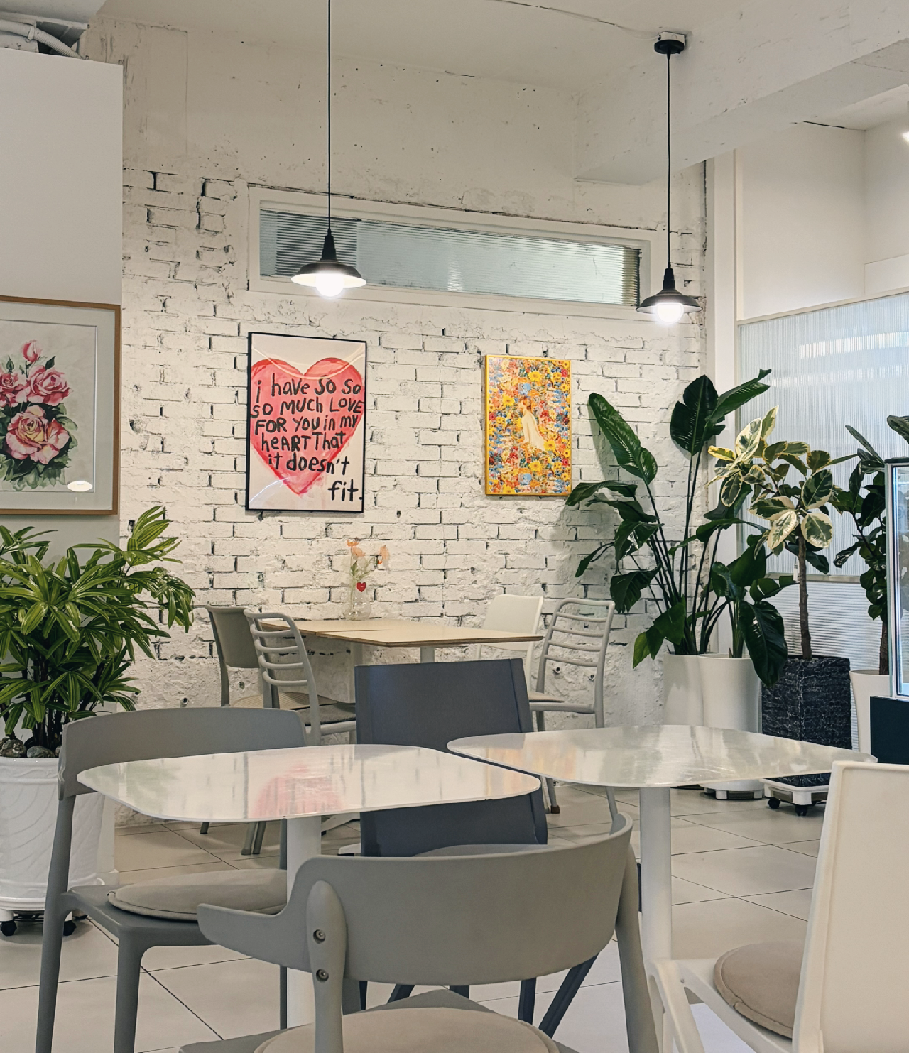 귀여운 외관에 설레는 마음을 안고 문을 열었다. 카페 안으로 들어서자 아늑하고 깔끔하면서도 감성적인 분위기가 한눈에 들어왔다.