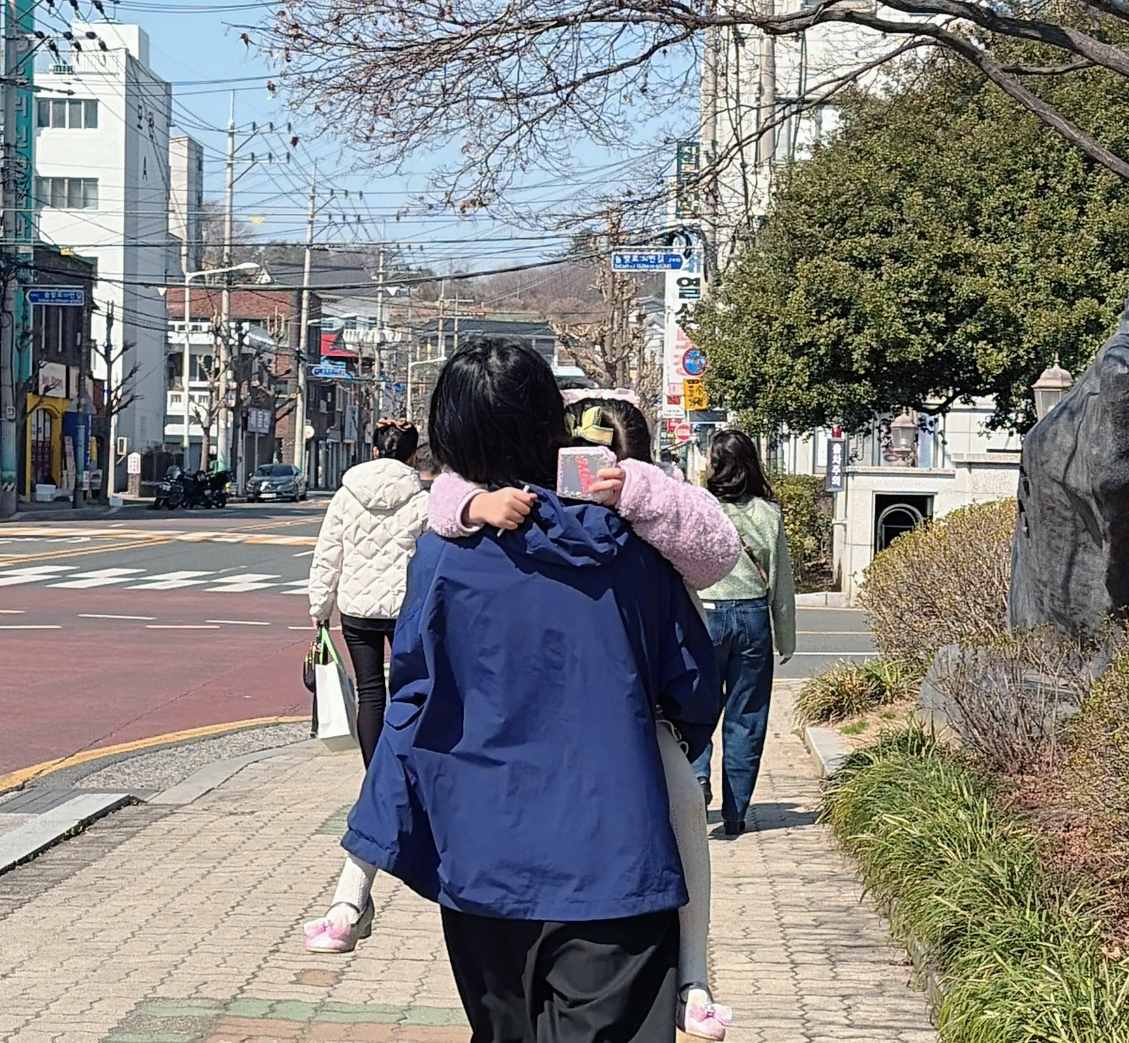 정장 가게에서 나와 점심을 먹으러 이동하는 짧은 길에서도, 수지는 이모에게 안겨 있었다. 일곱 살이나 된 아이를 안고 걷는데도, 힘든 내색 하나 없이 이모의 얼굴에는 웃음이 떠나지 않았다. 이모 품에 안긴 수지도 마냥 행복한 표정이었다.