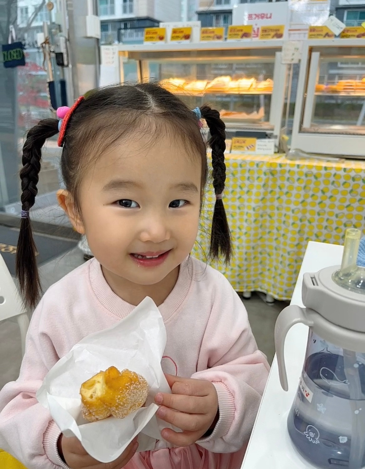 어제는 아이 하원하고 꽈배기가 먹고 싶다고 해서 도넛 가게에 갔다. 수지가 좋아하는 꽈배기를 파는 도넛 가게에 하원하고 가끔 간식 먹으러 간다.수지는 설탕 묻힌 꽈배기 하나를 혼자 야무지게 다 먹는다.