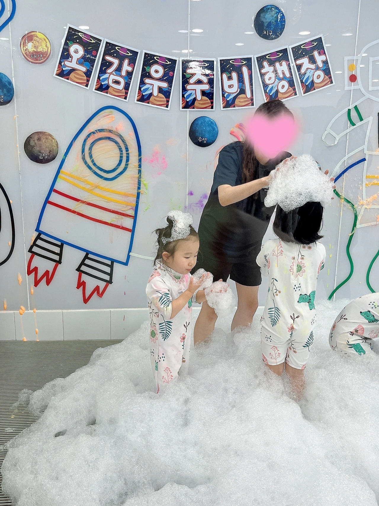 수지도 주말에 어디 가냐고 물어보고 궁금해하며 기대한다. 그래서 주말에 아이와 갈만한 곳을 더 열심히 찾게 된다. 이번엔 물놀이와 버블놀이를 할 수 있는 ‘오감, 그리다’에 가게 되었다.