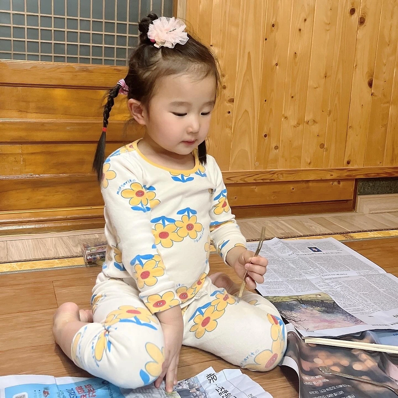 어른들이 다들 돌아가고 나니, 시끌벅적했던 집이 한적하고 조용해졌다. 고요해진 집엔 수지의 웃음과 귀여움만이 가득했다. 조용한 집에 아이의 말소리, 웃음소리가 채워지니 이제야 손님들을 다 돌려보낸 어르신들은 수지에게만 집중하시며 마음껏 이뻐하셨다.