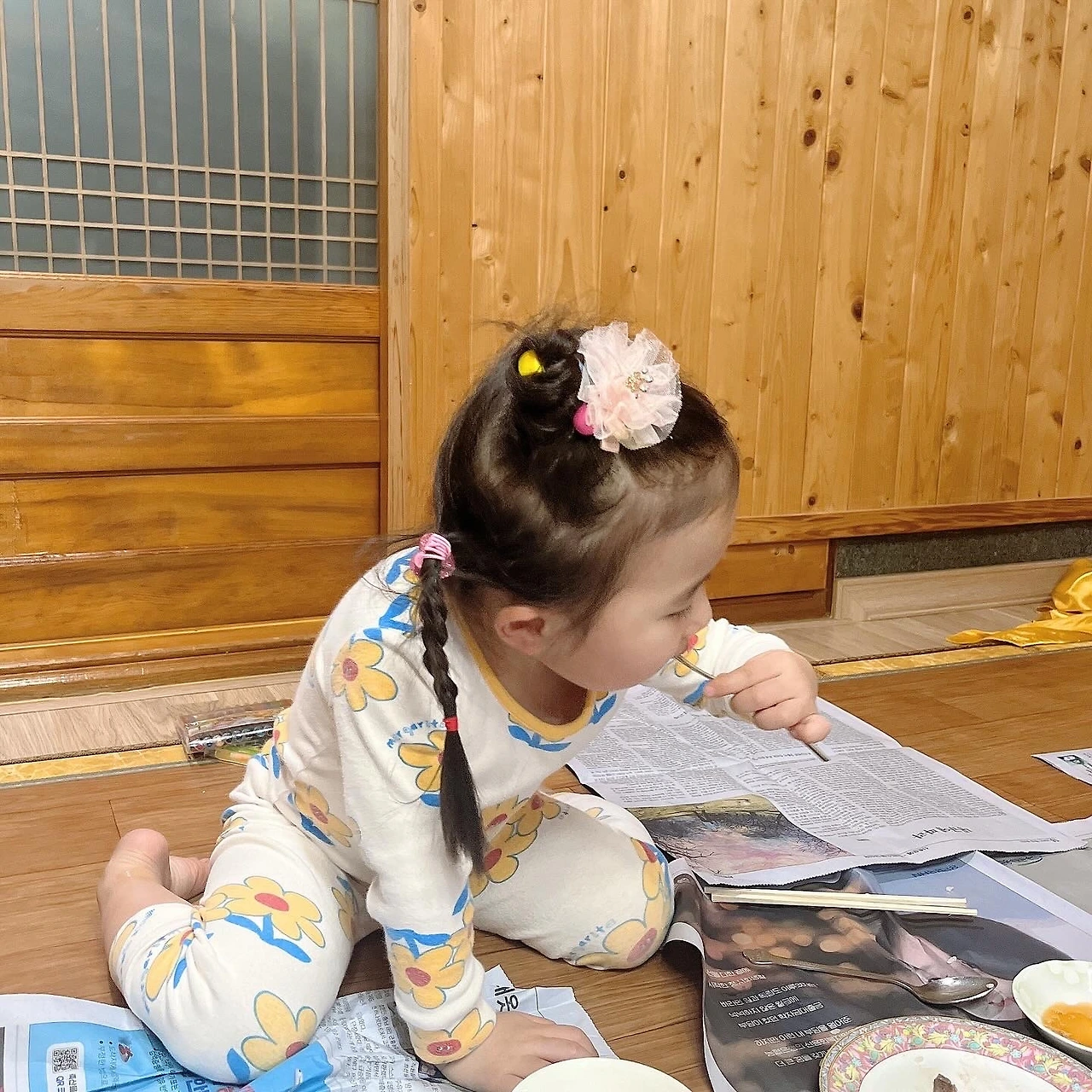 이번 설에는 시댁에 와서 하룻밤 자게 되었다. 남편은 밤새 야간근무하고 설날 아침에 와서 낮에 자고 오후 늦게 시댁에 가려고 했는데, 시댁에 모인 식구들이 수지를 보고 싶어 해서 우리는 점심시간에 맞춰서 왔다.