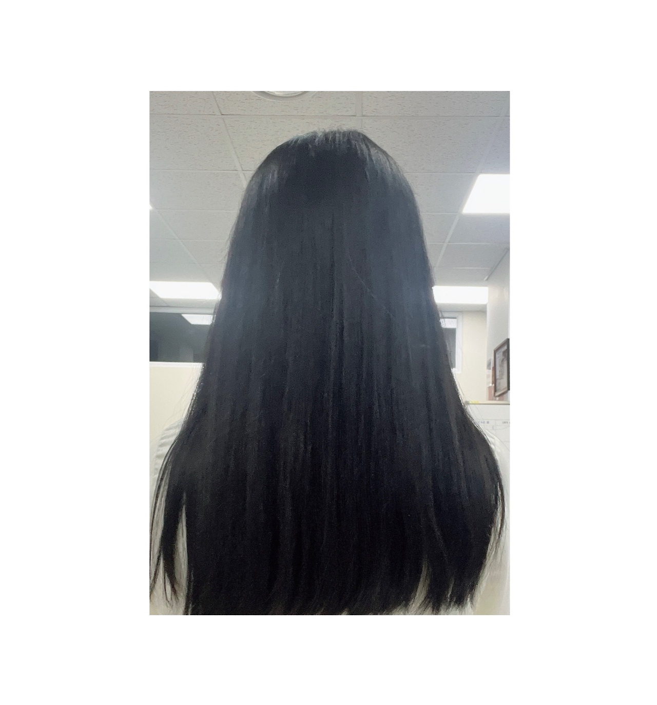 이렇게 우리 둘이 힘을 합쳐서 열심히 매직을 했다. 드디어 마지막 머리 헹굼을 하고 머리카락을 말리고 거울을 보는 순간! 차분하게 가라앉은 머리카락은 아주 단정했고 찰랑거렸다. 나름 성공적이었다.