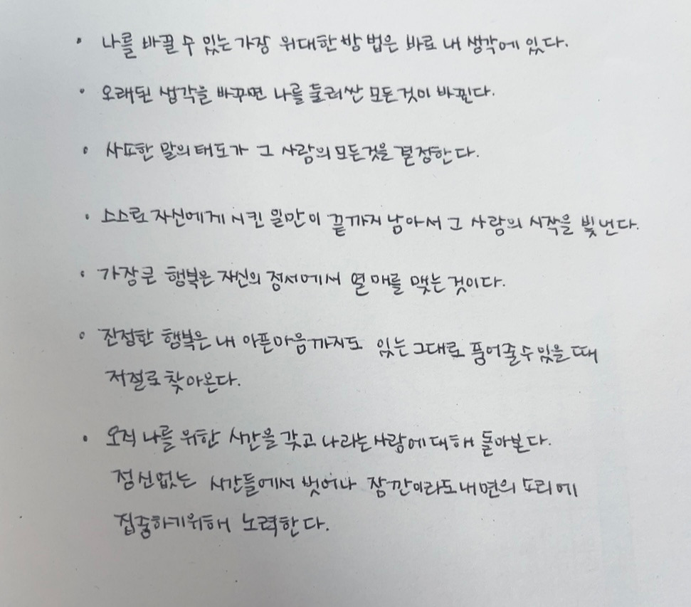 이제 원래 내가 갖고 있던 글씨체를 잘 다듬는 것에 집중해야겠다. 마음이 가벼워졌다.