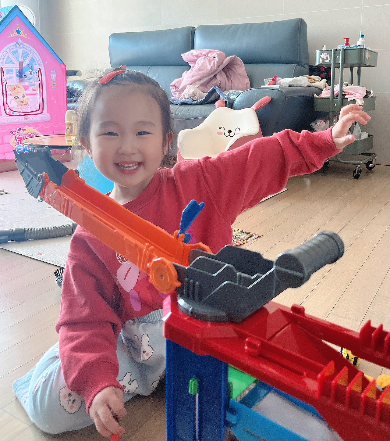 수지와 같이 타요 중장비 타워로 놀고 있는데, 난 너무 졸음이 왔다. 쏟아지는 잠을 주체하지 못하고 놀고 있는 수지 옆에 누웠다. 다행히 남편이 수지와 놀아주고 있어서 마음 놓고 잠시 자야겠다고 생각했다.