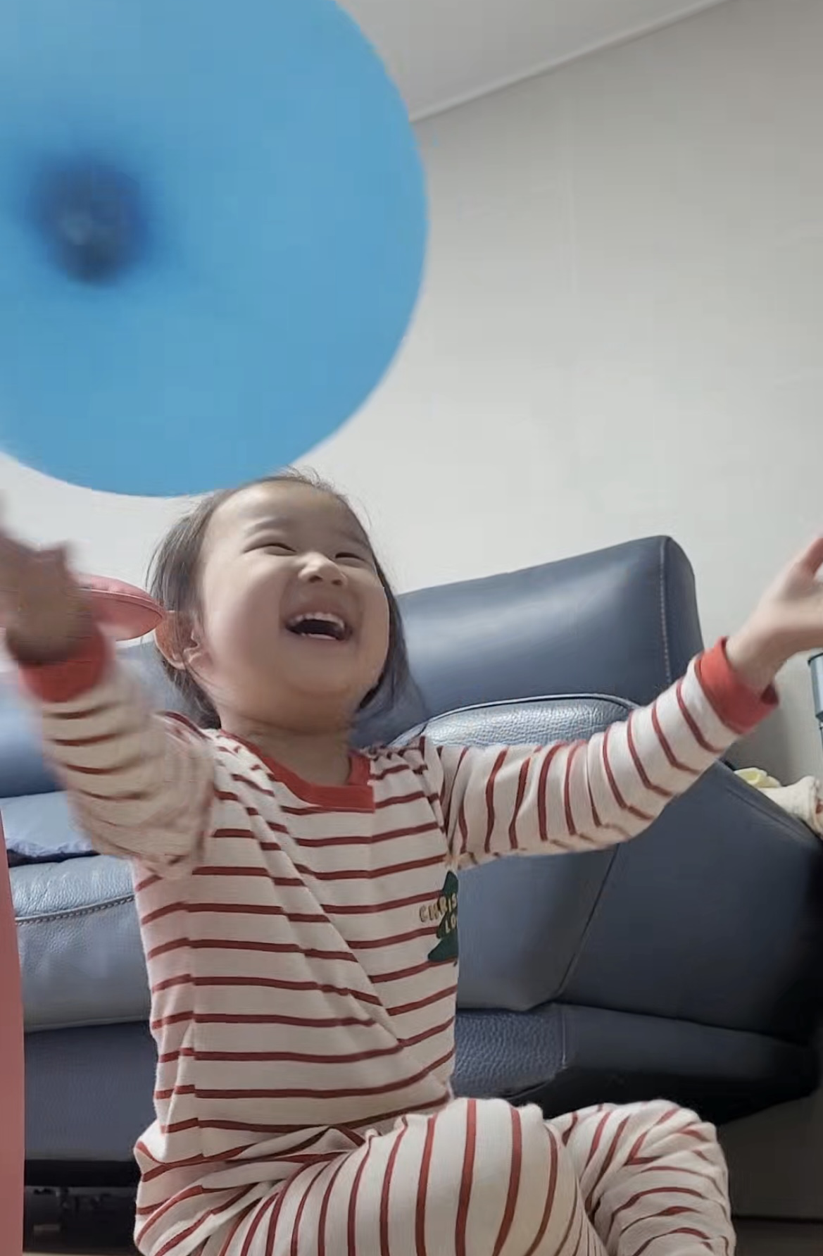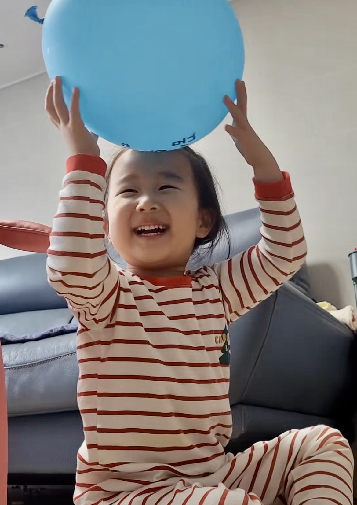 공을 받아도 웃고, 공을 놓쳐도 웃고 수지는 연신 즐거웠다. 셋이 앉아 풍선 주고받기 놀이를 하고 있으니 나도 잠시 어릴 적으로 돌아간 느낌이었다. 풍선 하나에 이렇게 행복하게 웃을 수 있는 것이 감사했다.