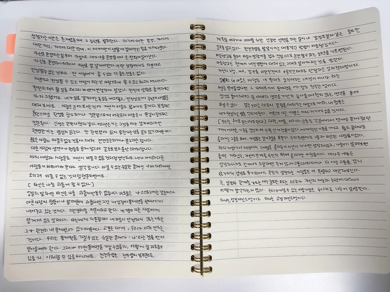 다른 사람 보여주는 게 아니라고 대충 휘갈겨 쓰는 게 아니라, 내가 보는 내 수첩이니까, 내가 만족하려고 정갈하고 이쁘게 신경 써서 쓴다. 깔끔하게 신경 써서 쓰인 글씨로 채워진 노트를 보면 기분이 좋아진다.