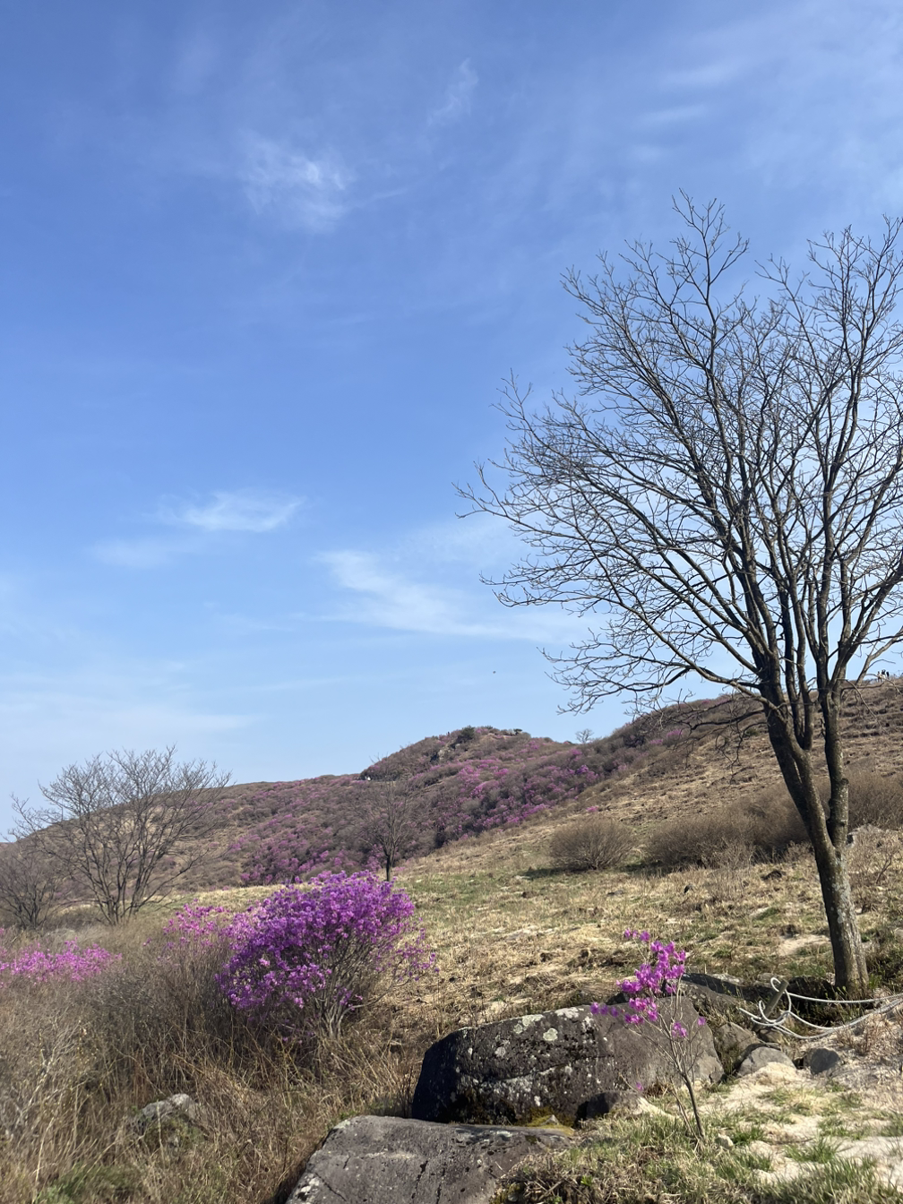 황매산은 봄에 철쭉으로도 유명한데, 4월 초의 황매산은 철쭉이 막 피고 있었다. 진한 핑크색을 띤 철쭉이 산을 물들이고 있는 풍경이 너무 아름다웠다. 그리고 꽃구경을 하며 산길을 올라갈수록 하늘과 가까워지는 것 같았다.