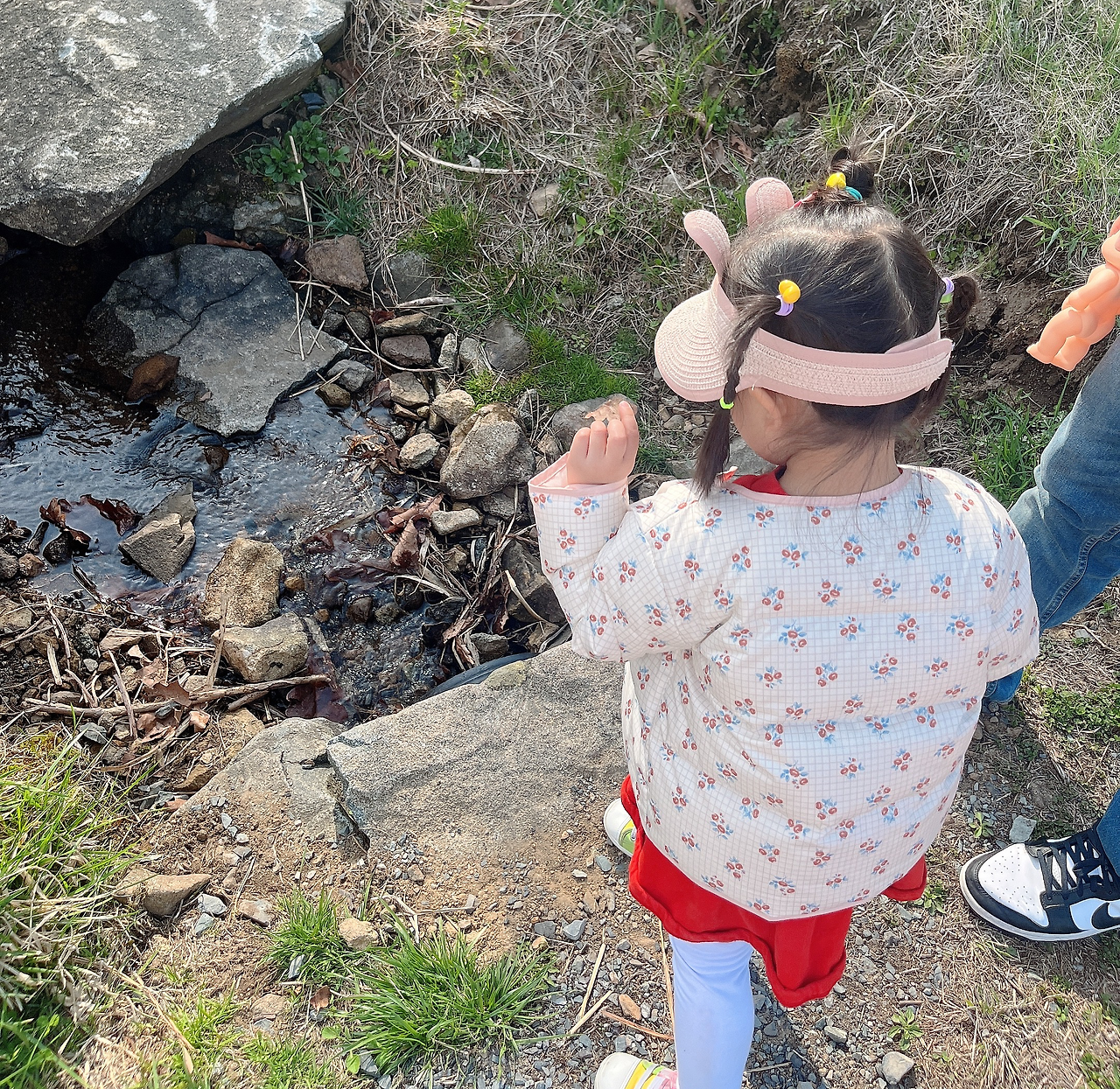 아이의 노는 모습을 바라보며 졸졸졸 흐르는 개울물 소리를 듣는 것도 힐링이었다. 수지가 자연을 벗 삼아 노는 모습이 참 편안하고 즐거워 보였다. 아이도 어른도, 역시 사람은 자연에 있을 때가 가장 평안하고 좋은 것 같다.
