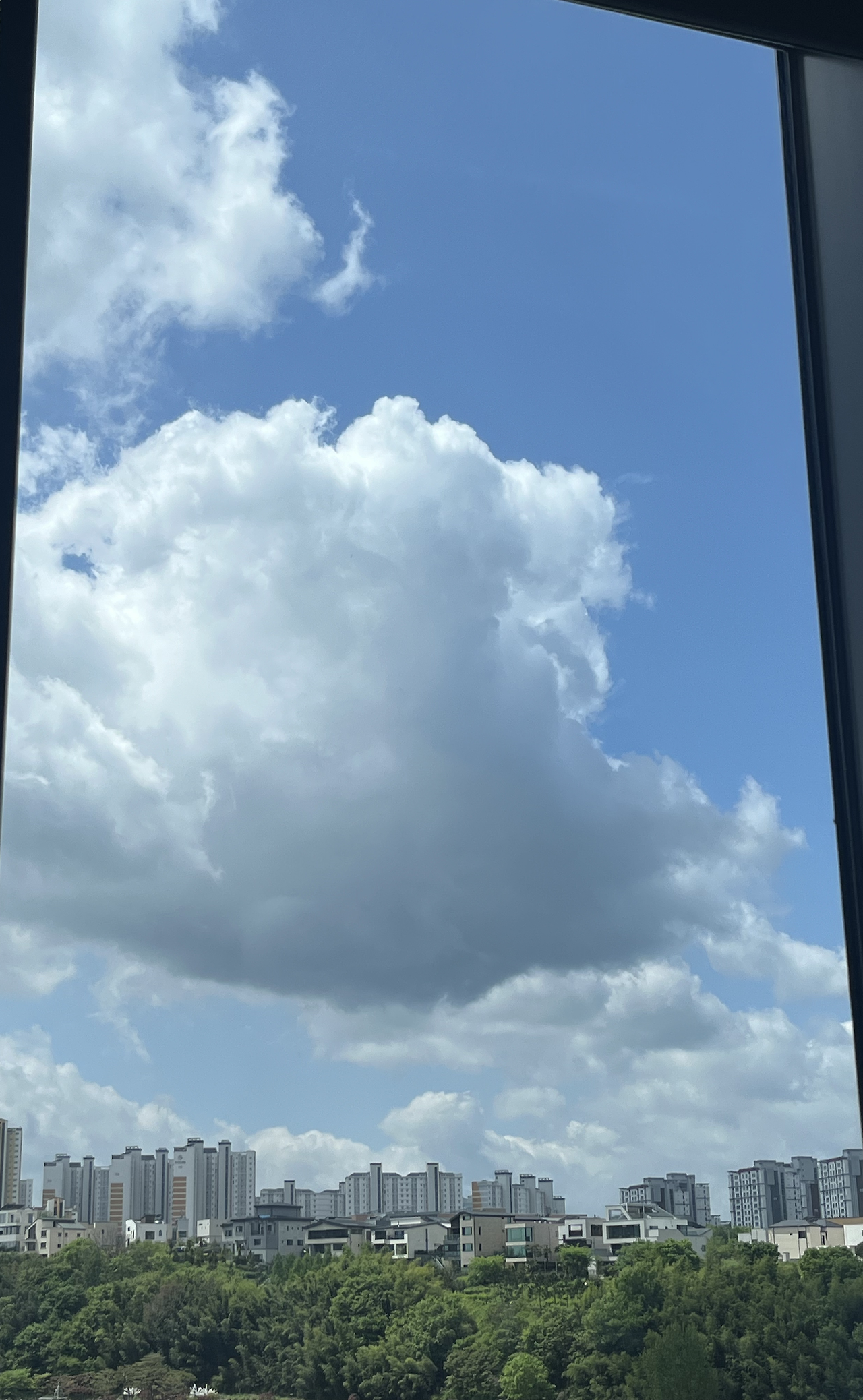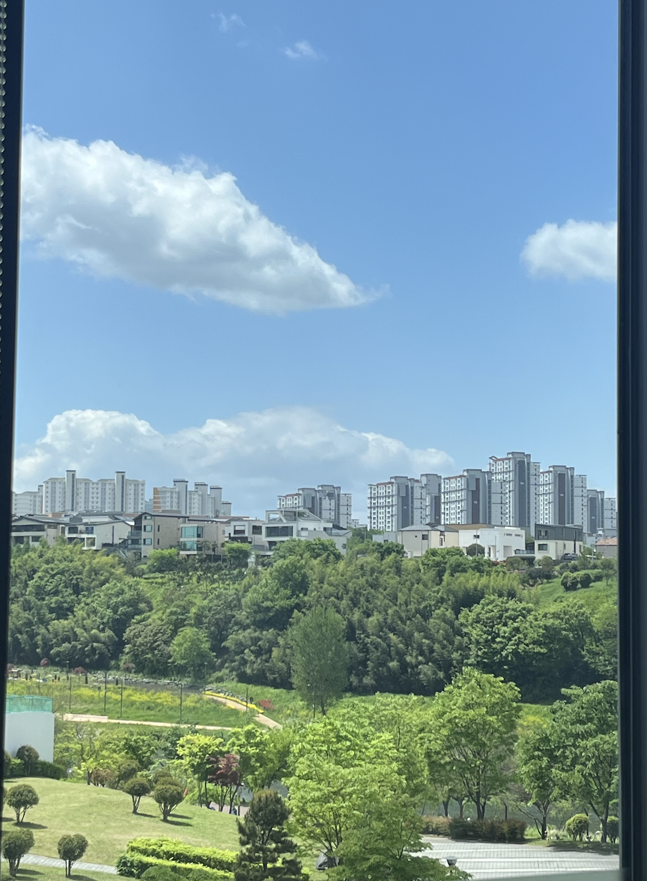 점심밥은 사무실 한 벽면이 다 통유리인 창문 앞 테이블에 앉아서 창밖 풍경을 바라보며 먹는다.