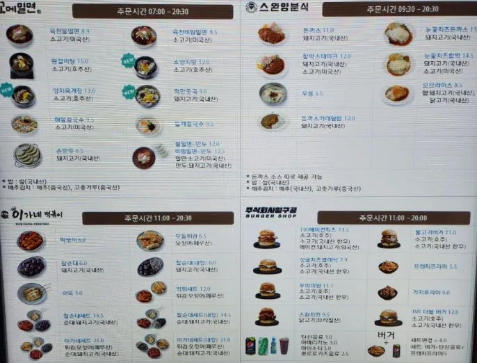 실컷 수영을 하고 와서 배고픈 아이와 남편을 위해 저녁을 먹으러 푸드코트로 내려갔다. 거제벨버디에 내에 ‘고메이’라는 푸드코트가 있는데 여기는 한식, 중식, 양식, 분식, 패스트푸드 등 다양한 종류가 있어서 내 입맛대로 골라 먹으면 된다. 멀리 나가지 않고 리조트 안에서 다 해결할 수 있으니 매우 편하다.