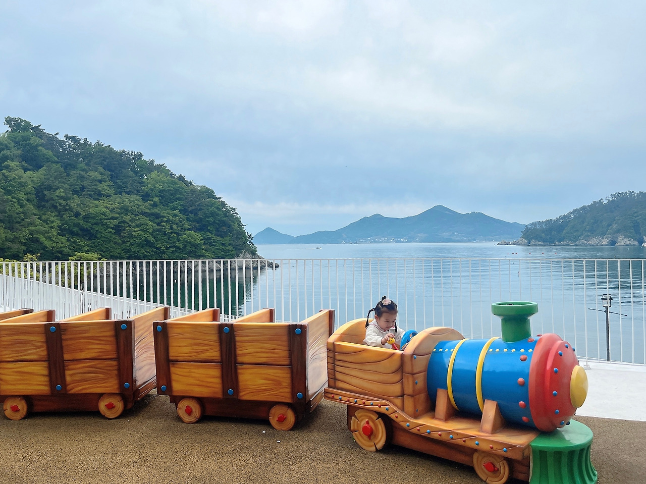 그렇게 뽀로로 파크에서 한참 놀며 즐거워하다가, 앞에 펼쳐진 아름다운 바다가 보이는 눈에 가득 들어온다. 너무 아름다워서 “수지야 저기 바다 봐바~ 너무 이쁘지?”라고 하며 내가 바다를 바라보니, 수지도 바다를 쳐다봤다. 바다를 수없이 많이 본 나도 바다를 볼 때마다 바다가 내뿜는 아름다움에 감탄하는데, 바다를 별로 본 적 없는 아이는 바다를 보면서 무슨 생각을 할까 괜히 궁금해진다.