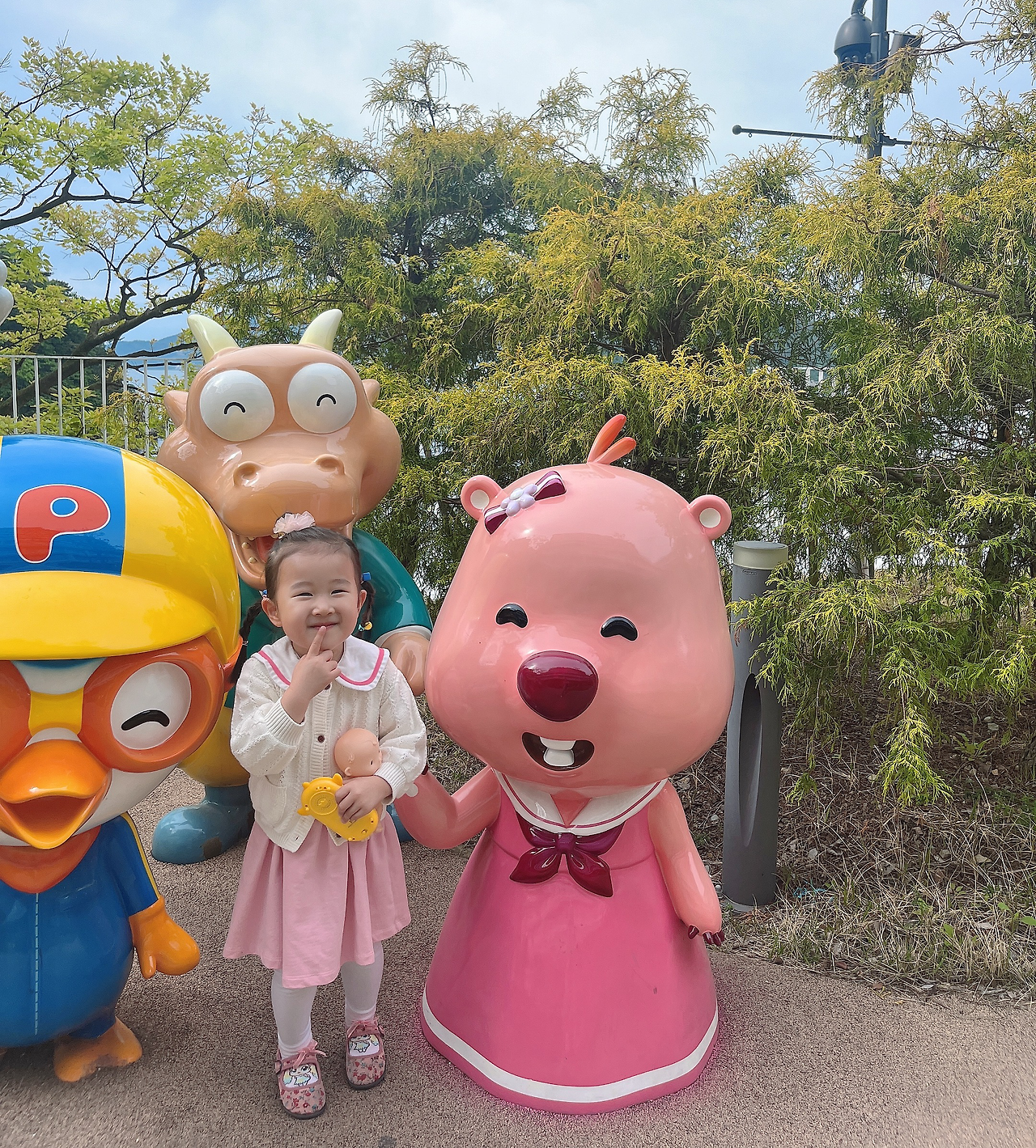아침 식사를 하고 나서 수지와 나는 아침 산책을 하러 나갔다. 벨버디어 야외 수영장 근처에 작은 뽀로로파크가 있는데 여기는 거제벨버디어 올 때마다 빠지지 않고 수지와 구경하러 온다. 작년에 오고 올해 또 와도, 아이는 여기 처음 온 것처럼 즐거워한다.