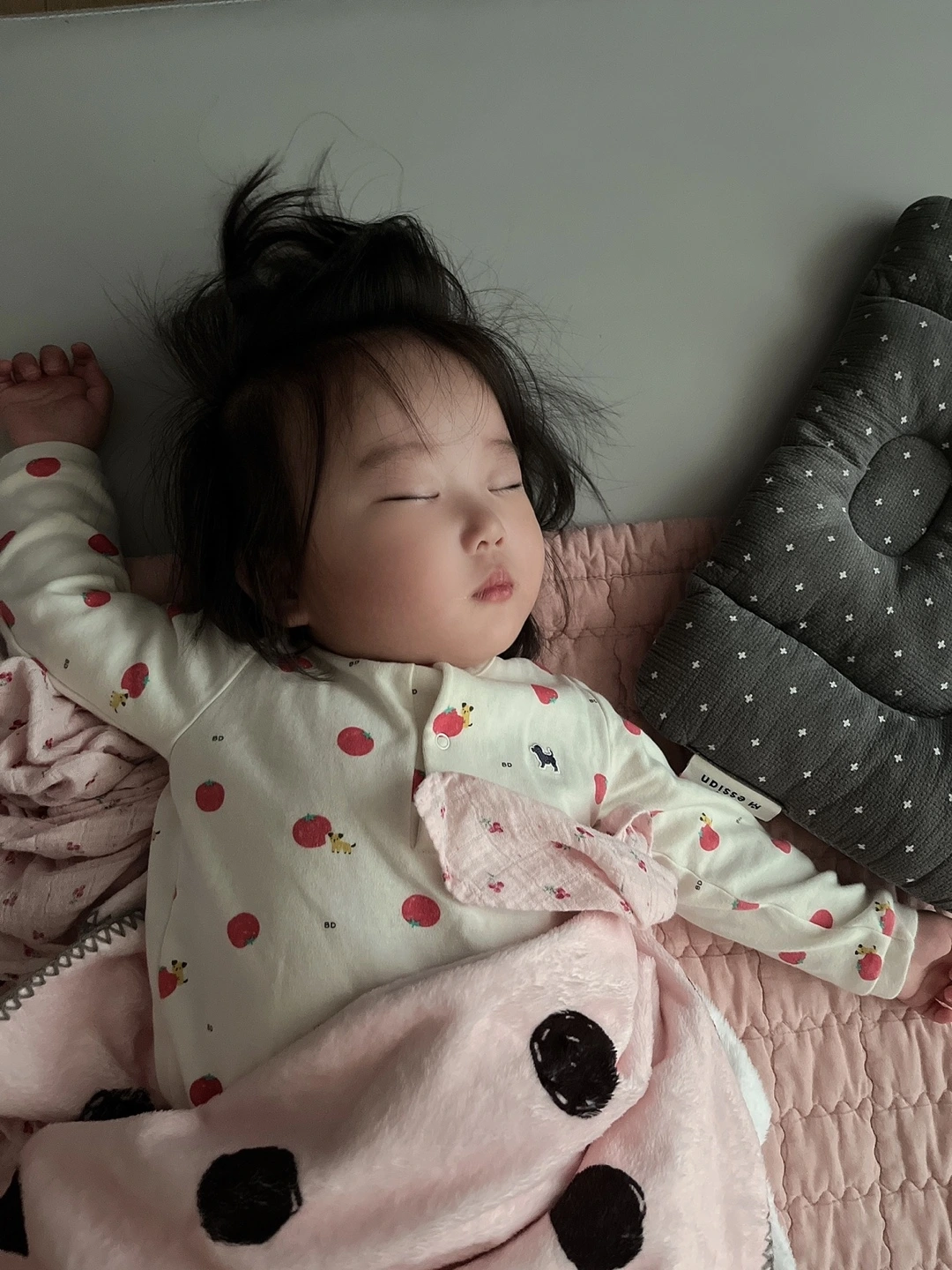이렇게 귀여운 수지를 더 오래 보고 싶어서, 아침에 일어나면 바로 깨우지 않고 좀 더 지켜본다. 곤히 자고 있는 얼굴을 들여다보면 이 순간이 흘러가는 게 너무 아쉽다. 시간을 붙잡고 싶은 마음이 간절해진다.