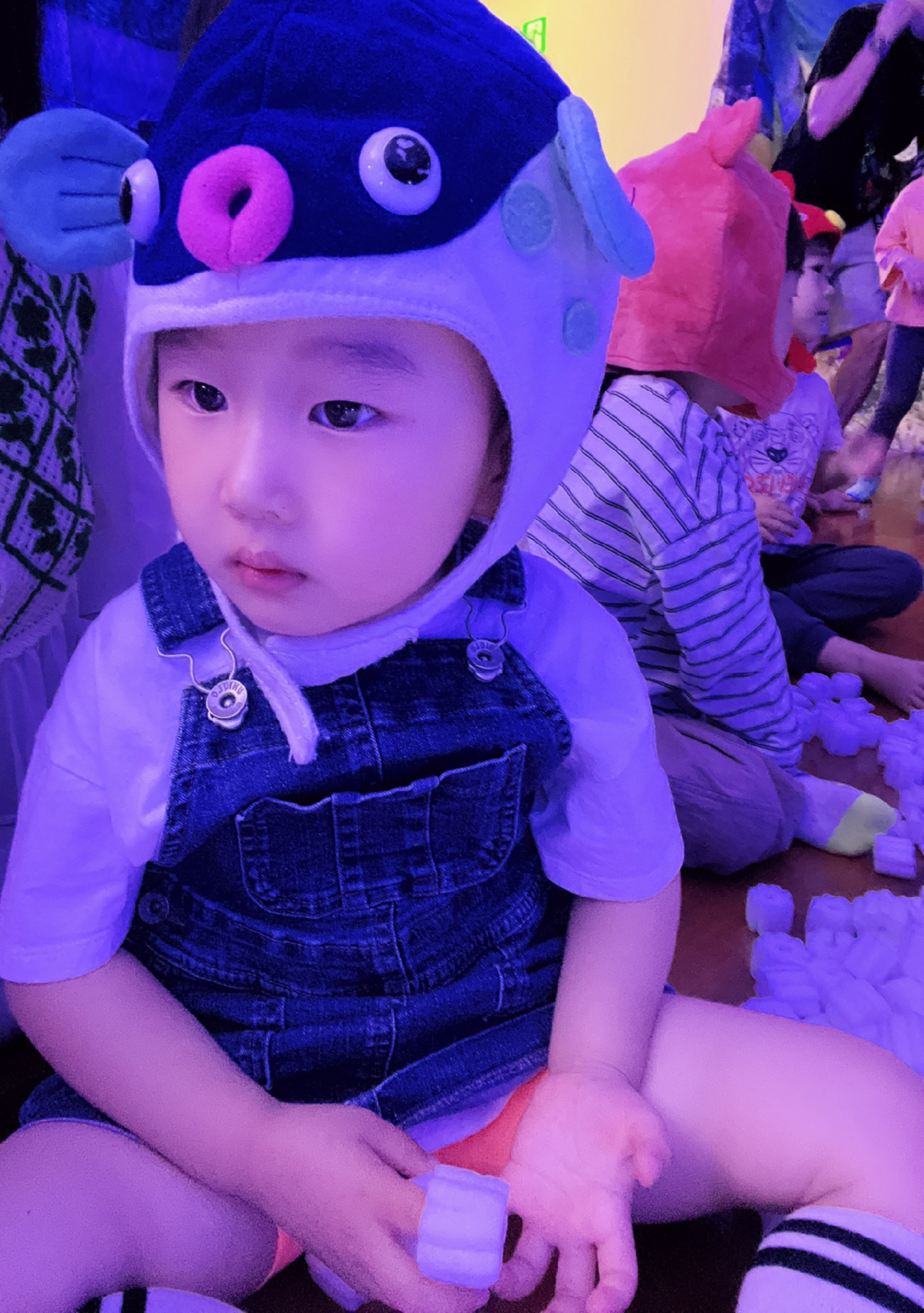 사진을 찍고 놀다 보니 바다 체험 놀이가 시작되었다. 교실은 어느새 아이들로 가득 찼다. 놀이가 시작되자 수지는 선생님에게 집중했고 적극적으로 참여했다. 선생님의 질문에 손을 번쩍 들고 대답하기도 하고, "앞에 나와서 춤춰 볼 사람?" 했을 때도 전혀 부끄러워하지 않고 가운데로 나가서 음악에 맞춰 귀여운 몸짓으로 춤도 췄다.
