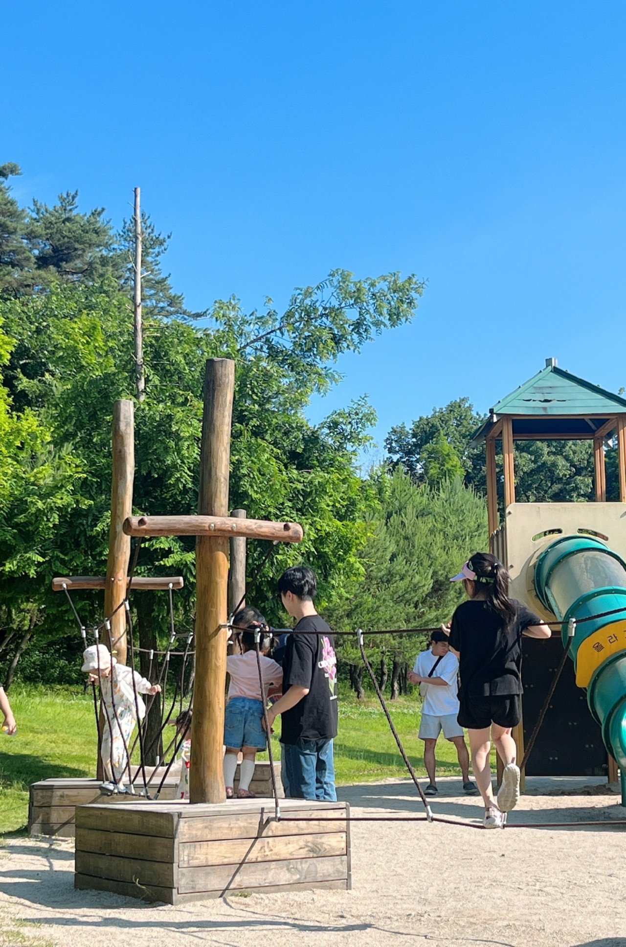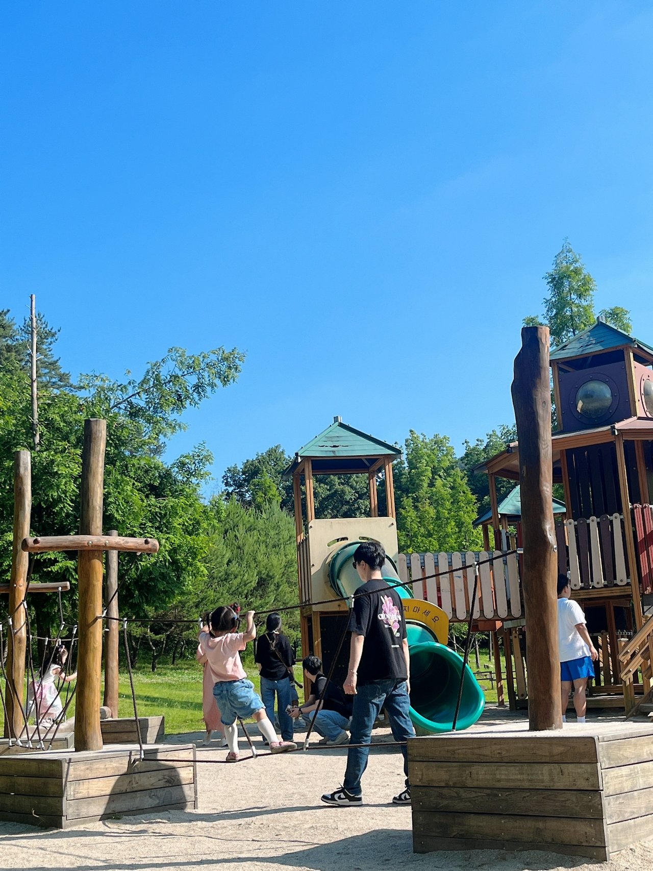 주로 아이들이 있는 가족단위로 많이 와있었다. 아이들이 노는 모습, 웃는 소리들로 가득 채워진 공원은 더 평화롭고 밝은 에너지로 넘쳤다. 이곳엔 어린이 놀이터도 있었고 집라인도 있었다. 그리고 아이들이 물놀이를 할 수 있는 분수도 있었다. 여긴 그야말로 아이들을 위한 천국이었다.