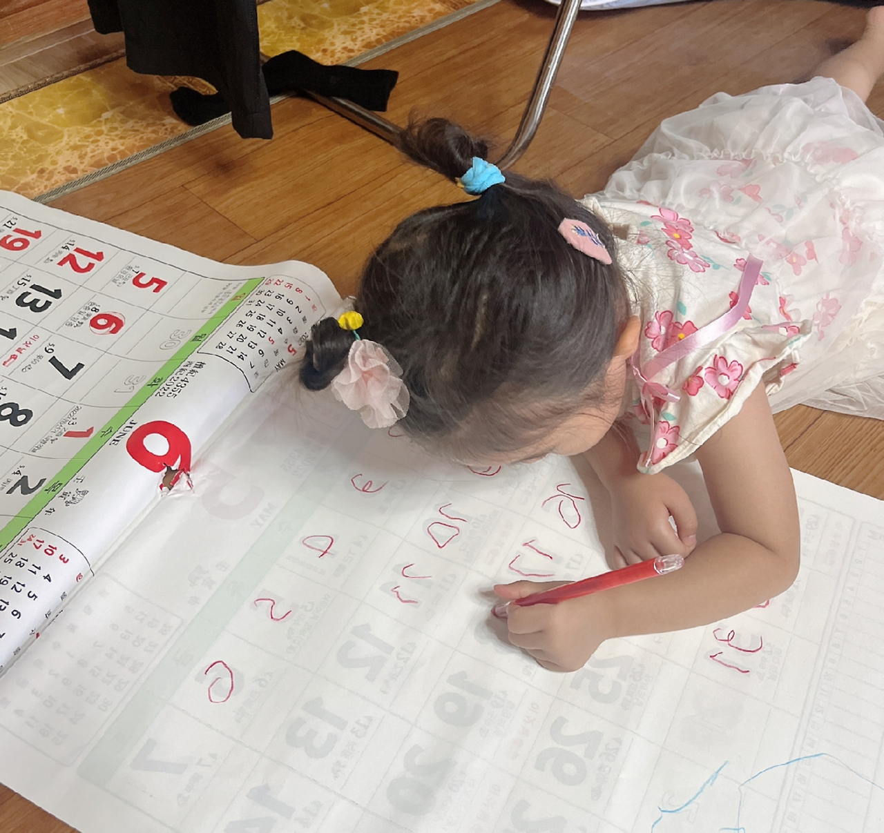 수지는 할머니 집에 있는 큰 달력을 스케치북 삼아 그림도 그리고 숫자도 썼다. 그림 하나 그리고, 숫자 하나 쓰는 것만으로도 어르신들의 기쁨이 된다.